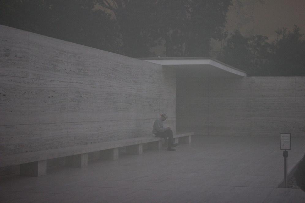 Por otra parte, si bien el arte es mímesis, para Platón pensar en el arte es pensar en la facultad humana de expresar simbólicamente lo metafísico, lo oculto, todo lo que escapa a los cánones de la racionalidad. En este sentido, al mismo tiempo que observamos a un hombre abocado a la repetición de su “cotidianidad subterránea”, estamos asistiendo a lo largo de la historia la creación de varias imágenes nuevas generadas por los efectos de la luz a partir de la superposición y copia de formas existentes generando relecturas de una obra arquitectónica tan consagrada como el Pabellón de Mies van der Rohe.