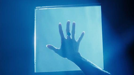 La cámara filma el reflejo del vidrio de manera aproximada, sin entender exactamente de dónde es la imagen pero vemos al hombre llegar y sentarse en su silla de trabajo. Se da un zoomout y tenemos la imagen completa dentro de la “pantalla” dentro del vidrio