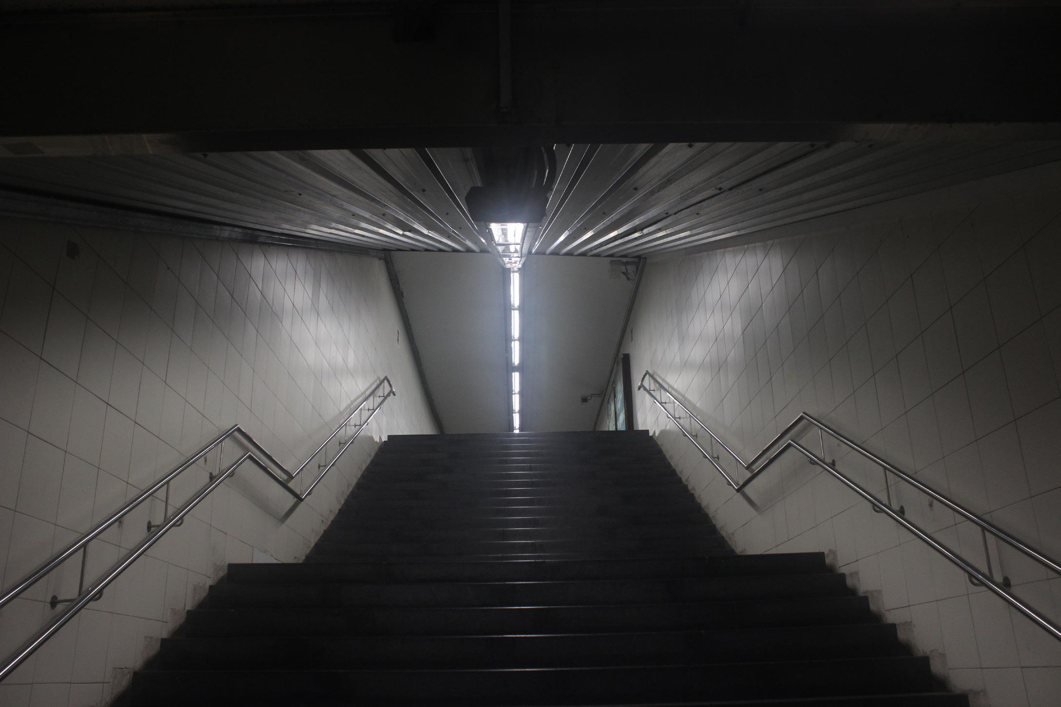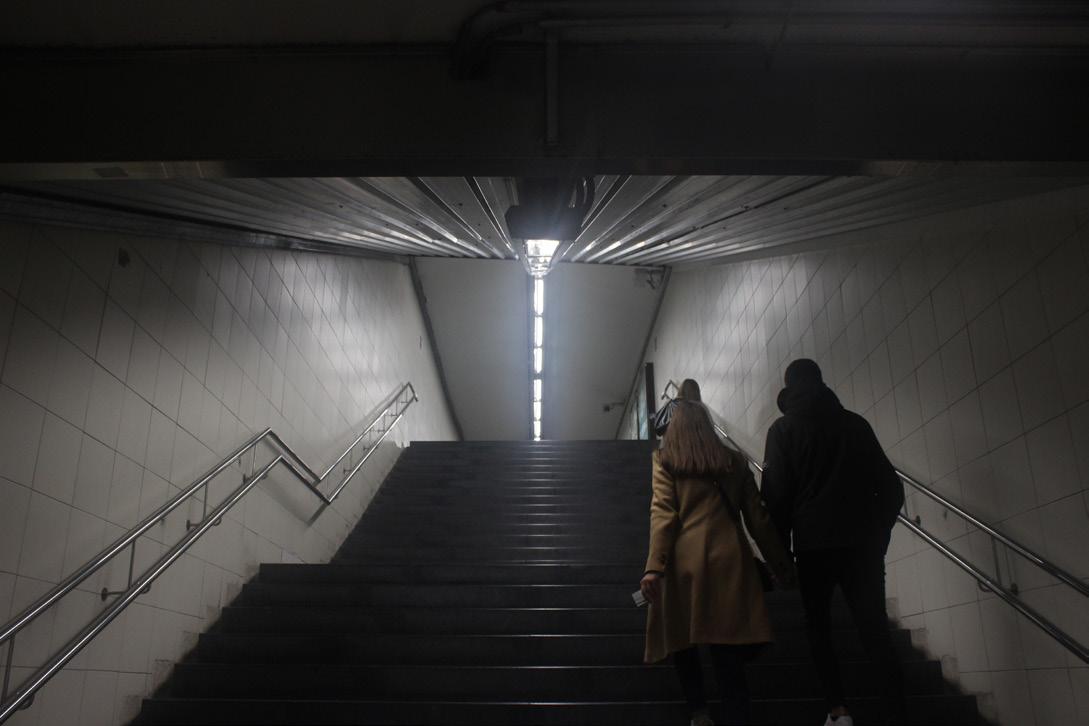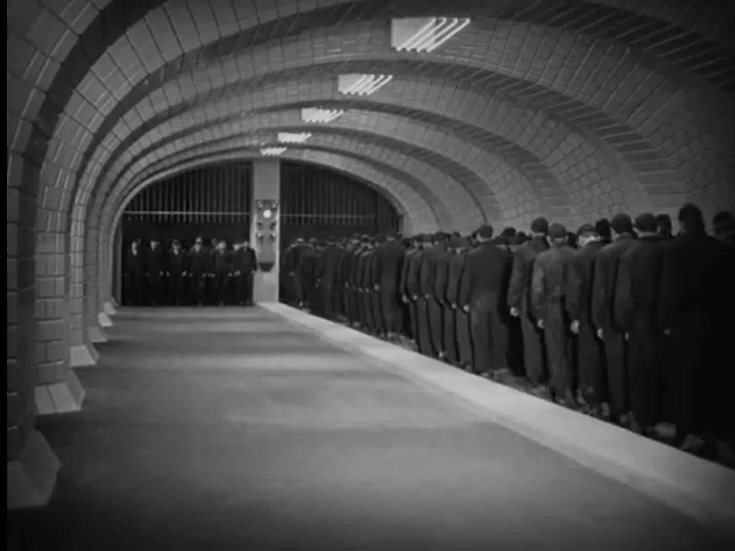 Empieza con escenas dentro del pasillo del metro (escuchamos el sonido del vagón en movimiento). Se pretende que el personaje sea filmado de espaldas a lo largo de esta secuencia. No está solo en este pasillo porque la idea es que no solo él sino todas las personas que aparecen también estén atrapadas en este mismo círculo vicioso