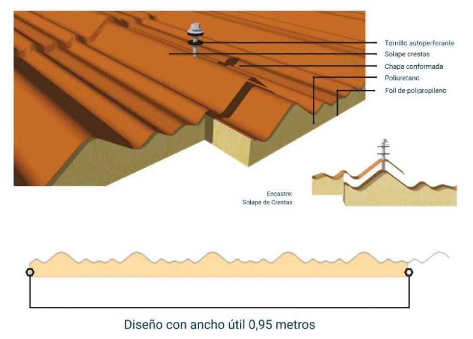 Panel en núcleo de poliuretano (PUR) o po liisocianurato (PIR) de alta densidad con re cubrimiento en cara superior de acero galva nizado, prepintado o cincalum; e inferior con foil de polipropileno. Fabricado en proceso de línea continua, es ideal para cubiertas re sidenciales