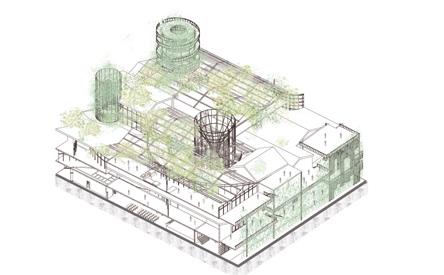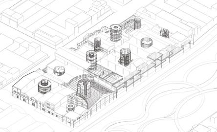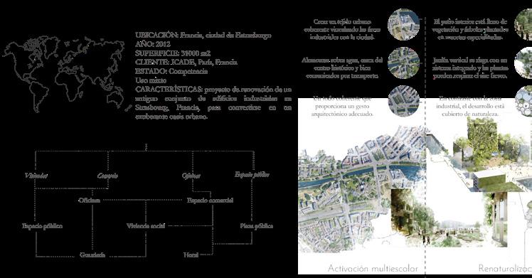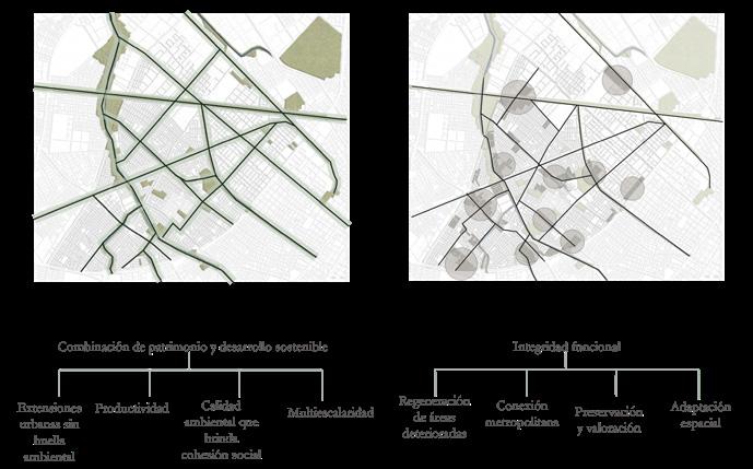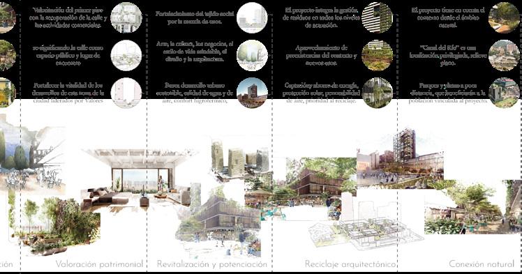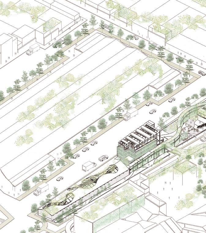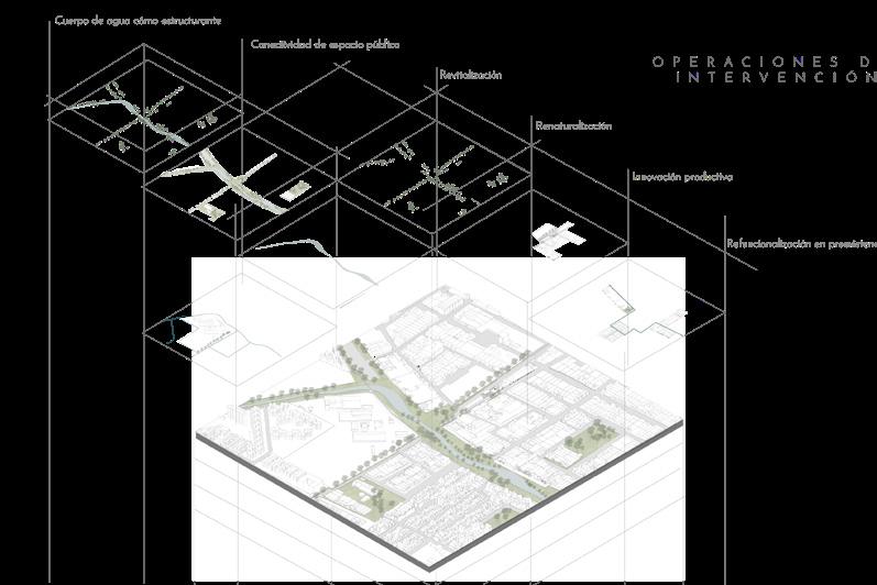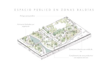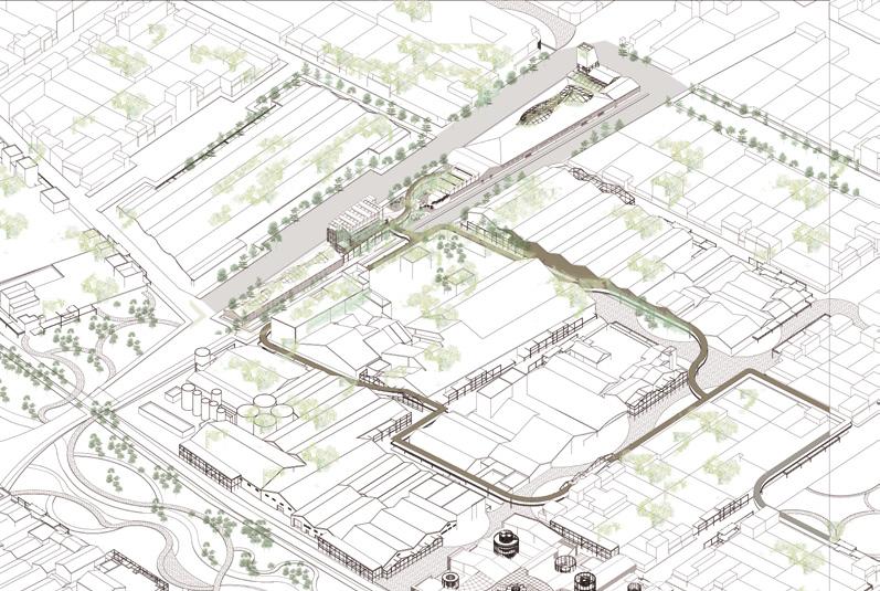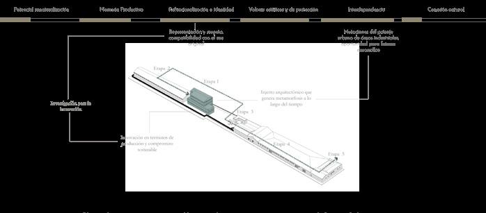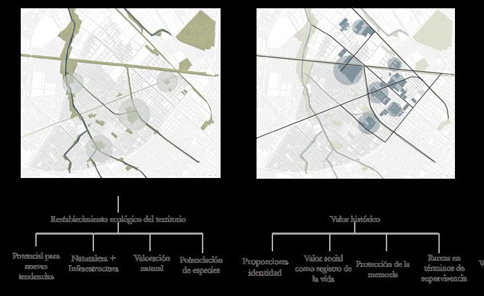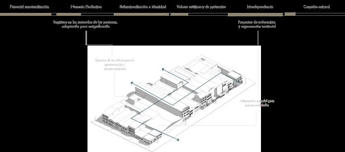 - La primera reconoce las naves industriales de Grasco como memoria productiva del lugar que se debe valorar y revitalizar, y la intervención se da de forma gradual por medio de la Re-funcionalización y naturalización de las naves productivas actuales.
