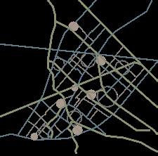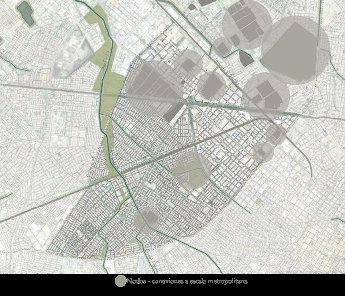 • Emplazamiento de cuatro puntos clave a escala de centros urbanos que explican la naturaleza del sector y son potenciales sitios de intervención desde el arte, el espacio público, la memoria productiva y la revitalización.