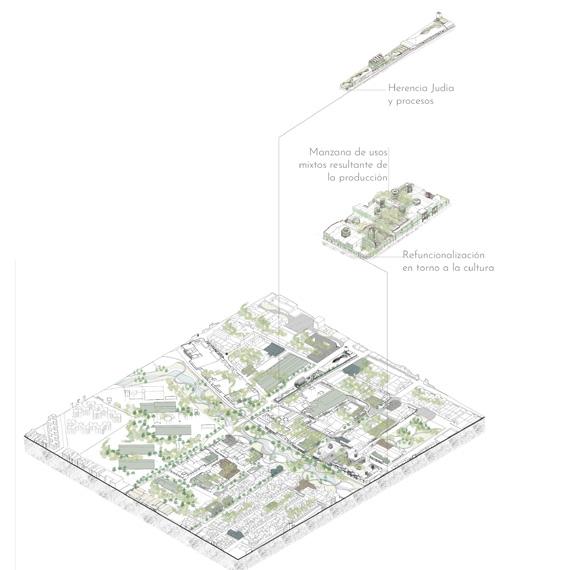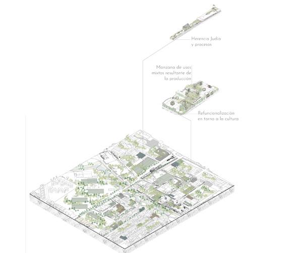 13.1.1 Estado actual 13.1.2 Herencia judía 13.1.3 Concepto de diseño: Mancha de aceite 13.1.4 Fases de intervención 13.1.5 Propuesta 13.1.6 Costos 13.1.7 Detalles y vistas 13.1.8 Intervención multiescalar 13.2 Manzana comercial: actividad e identidad