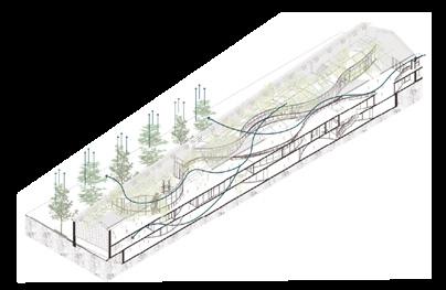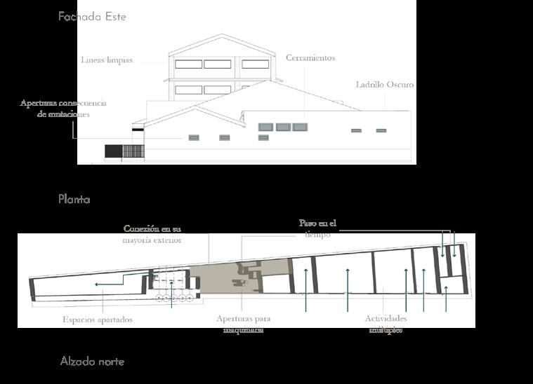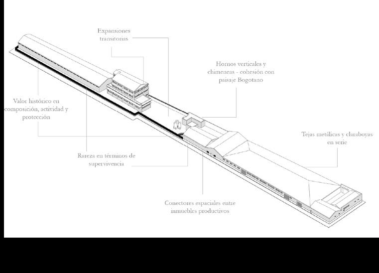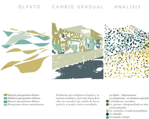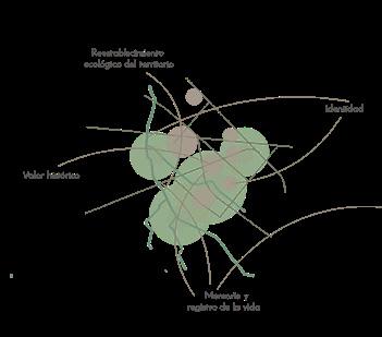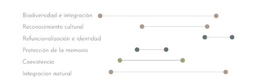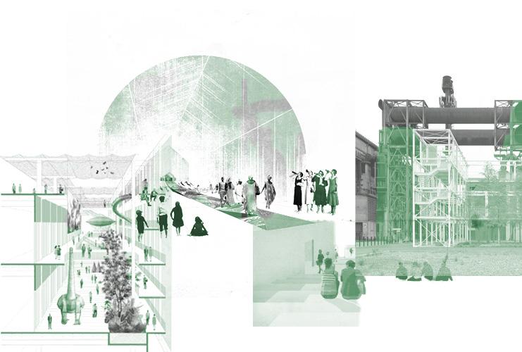 - La segunda, tiene que ver con la arquitectura de la identidad que se produce a raíz de estos entornos industriales, esta se reconoce desde sus valores como los registros y recuerdos de la comunidad que posteriormente se pueden adaptar y refuncionalizar en torno a nuevos espacios de la cultura y la naturaleza, generando una simbiosis con intervenciones temporales y nuevos “injertos naturales” dados forma gradual en el paisaje entendiendo las tendencias del sector y la metamorfosis.