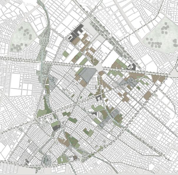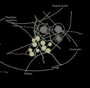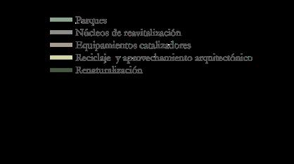 12.1 Núcleos dinamizadores clave 12.1.1 Centros comuneros 12.1.2 Centro Zona Industrial 12.1.3 Polígono Distrito Grafiti 12.1.4 Centro Ciudad Montes 12.2 Desarrollo de Centro comuneros 12.2.1 Tres realidades latentes del lugar 12.2.2 Valoración escala anemófila 12.2.3 Propuesta Centro Comuneros: Biodiversidad y memoria productiva 13. ESCALA DRUPA: Intervenciones arquitectónicas 13.1 Conjunto Grasco: Patrimonio Industrial