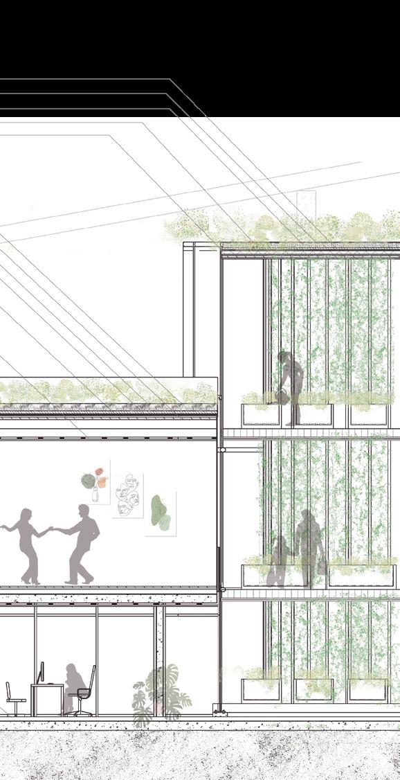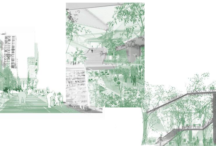 1.5 Abrir paso a la innovación mediante renaturalización generada mediante injertos y nuevos tipos de fachadas que se pueden replicar en el entorno, además de equipamientos como laboratorios abiertos a la investigación y el desarrollo que fomenten nuevas técnicas y prácticas para un futuro amigable y sostenible.