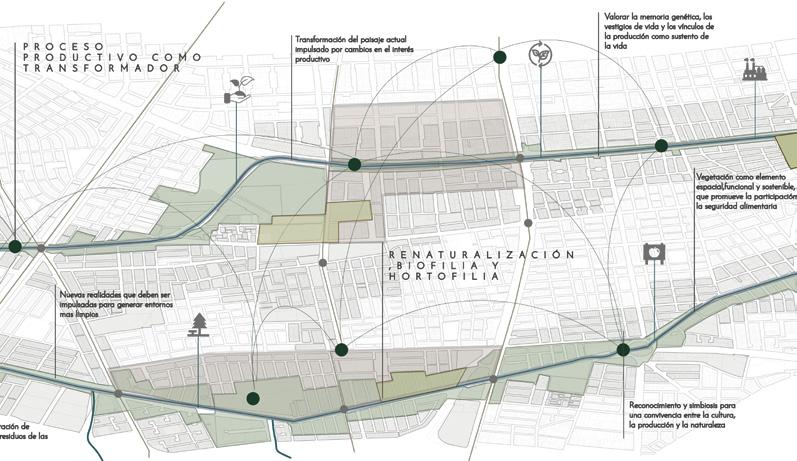 1.2 Re naturalizar y naturalizar, con el río como conector, para generar un trabajo recíproco con la naturaleza que fomente la interacción e interdependencia con nuevas formas de vida y la coexistencia con sistemas naturales.