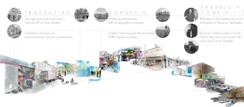 Ilustración 59: Usos y actividad Ilustración 60: Bodegas Puente Aranda Ilustración 61: Entornos de vivienda Ilustración 62: Fábricas Ilustración 63: vivienda Ilustración 64: Contaminación a nivel sectorial Ilustración 65: Bodegas y contaminación Ilustración 66: Contaminación de industrias Ilustración 67: Contaminación en vías Ilustración 68: Residuos de industria y vivienda Ilustración 69: Nodos y equipamientos Ilustración 70: Corferias Ilustración 71: Universidad Nacional Ilustración 72: Parque Ciudad Montes Ilustración 73: club militar Ilustración 74: Tendencias del sector Ilustración 75: Huertas urbanas Ilustración 76: Orquesta Ilustración 77: Outlets de las américas Ilustración 78: Exposición de Van Gogh Ilustración 79: Población y actividad Ilustración 80: Naturaleza y especies Ilustración 81: Población y actividad Ilustración 82: Naturaleza y especies Ilustración 83: José, celador Ilustración 84: señora Blanca Ilustración 84: Miller, trabajador de tamales Ilustración 85: Vicente Ilustración 86: Transporte en el sector Ilustración 87: Valoración del sector de Puente Aranda Ilustración 88: Calle 6ta, entorno inmediato Ilustración 89: Capas de convergencia Ilustración 90: Convergencia-diagnóstico del sector Ilustración 91: Interior de Bodegas Puente Aranda Ilustración 92: Referentes: 22 @ Barcelona Ilustración 93: Referentes: Oasis Urbano Ilustración 94: Referentes: Parque Duisburgo Nord Ilustración 95: Referentes: Distrito Vera en Medellín Ilustración 96: Referentes: Corredor verde en Cali Ilustración 97: Collage conceptual Ilustración 98: Collage conceptual - metamorfosis arquitectónica Ilustración 99: Escalas de actuación en base al árbol del Nogal Ilustración 100: Vistas peatonales del sector Ilustración 101: Distrito Grafiti Ilustración 102, 103.104,105,106,107: Estrategias de intervención a nivel de localidad Ilustración 108: Master plan para la localidad e Puente Aranda Ilustración 109: Propuesta de Sistema Natural Ilustración 110: Propuesta de Movilidad Ilustración 111: Propuesta para Equipamientos y Espacio Público Ilustración 112: Propuesta de usos y actividad Ilustración 113: Sección propuesta Ilustración 114: Sección propuesta Ilustración 115: Sección propuesta Ilustración 116: Escala anemófila, Centro Comuneros Ilustración 117: Ubicación de Centros clave Ilustración 118: Centro comuneros Ilustración 119: Zonas obsoletas
