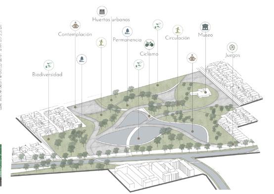 Desde la identidad Javeriana, el proyecto integra la naturaleza actual de un sector degradado de la ciudad, y lo revitaliza con el fin de lograr desarrollo sostenible que se genere de forma integral y equitativa; además, se fomenta la cultura mediante la arquitectura que reconozca los valores actuales de la memoria productiva del lugar y los de a conocer. Asimismo, actúa de forma innovadora con intervenciones poco invasivas que entiende la naturaleza del lugar y conectan la biodiversidad con la infraestructura existente, esto teniendo en cuenta además los principios nombrados por el Papa Francisco en su encíclica “Laudato si”, que busca alternativas para mejorar la calidad de vida con el fin de lograr una ecología integral y el cuidado de la casa común, de forma que la ecología interrelacione la sociedad con la naturaleza de forma transformadora, este principio es la base que sustenta el proyecto desarrollado.