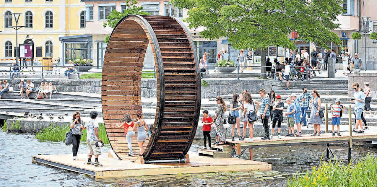 Miler Lagos, uno de los artistas invitados, llegó a Örebro con la idea de construir una rueda acuática gigante en uno de los ríos de la ciudad, que según había investigado, tenía una corriente poderosa.