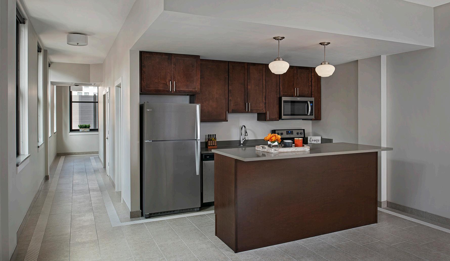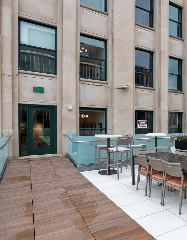 A steel and concrete building faced with red brick and pressed metal, The Farwell Building was fully restored and renovated into a mixed use project featuring retail space on the 1st floor, office space on the 2nd floor, and 82 multi-family apartments on the 3rd-8th floor. As part of the residential work, a large roof deck was added to the building roof. The iconic Tiffany glass mosaic tile domed lobby and central atrium were fully restored.