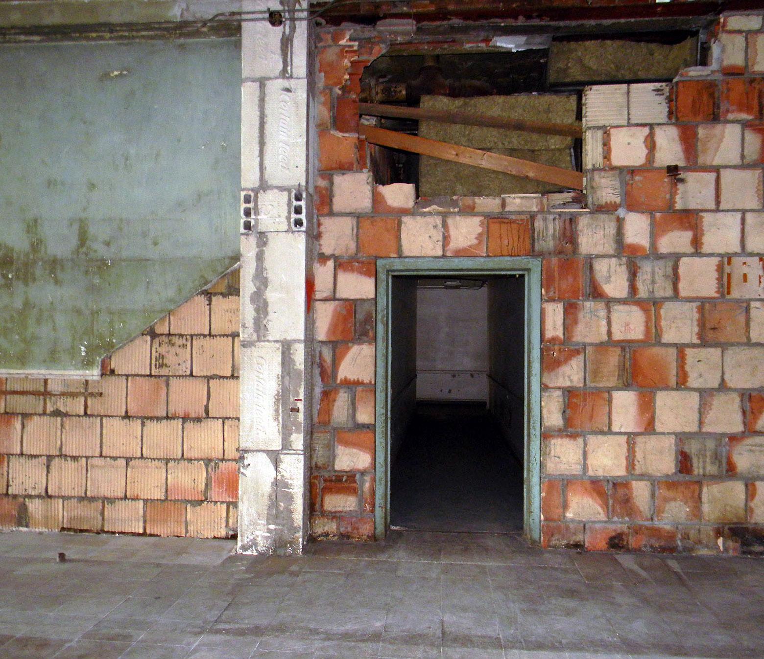 With the fire wall between the two buildings, the second exit from 1217 Woodward could not be through 1201 Woodward. To avoid adding a second enclosed stair in 1217 Woodward, a fire rated vestibule was built around the entrance to the shared stair, with fire doors leading to both 1201 and 1217.
