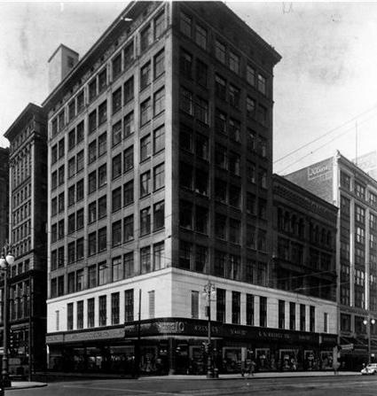 The building at 1217 Woodward began as a five-story steel and timber building faced with brownstone, and was joined to the new flagship store for the Kresge Company when it was constructed at 1201 Woodward in 1917. The building at 1201 Woodward was a 9-story steel framed and limestone and brick clad building. Renovations as the “Kresge Korner” became a phenomenal success further combined the two buildings, with Kresge taking over the entirety of 1217 Woodward in 1938.