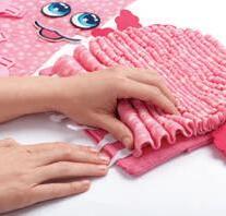 Knit adorable characters, fast and easy! With oodles of fuzzy yarn! This is another fun and easy kit using our patented adjustable loom! Easy as 1,2,3! video available online! tons of Mix & match felt stickers!