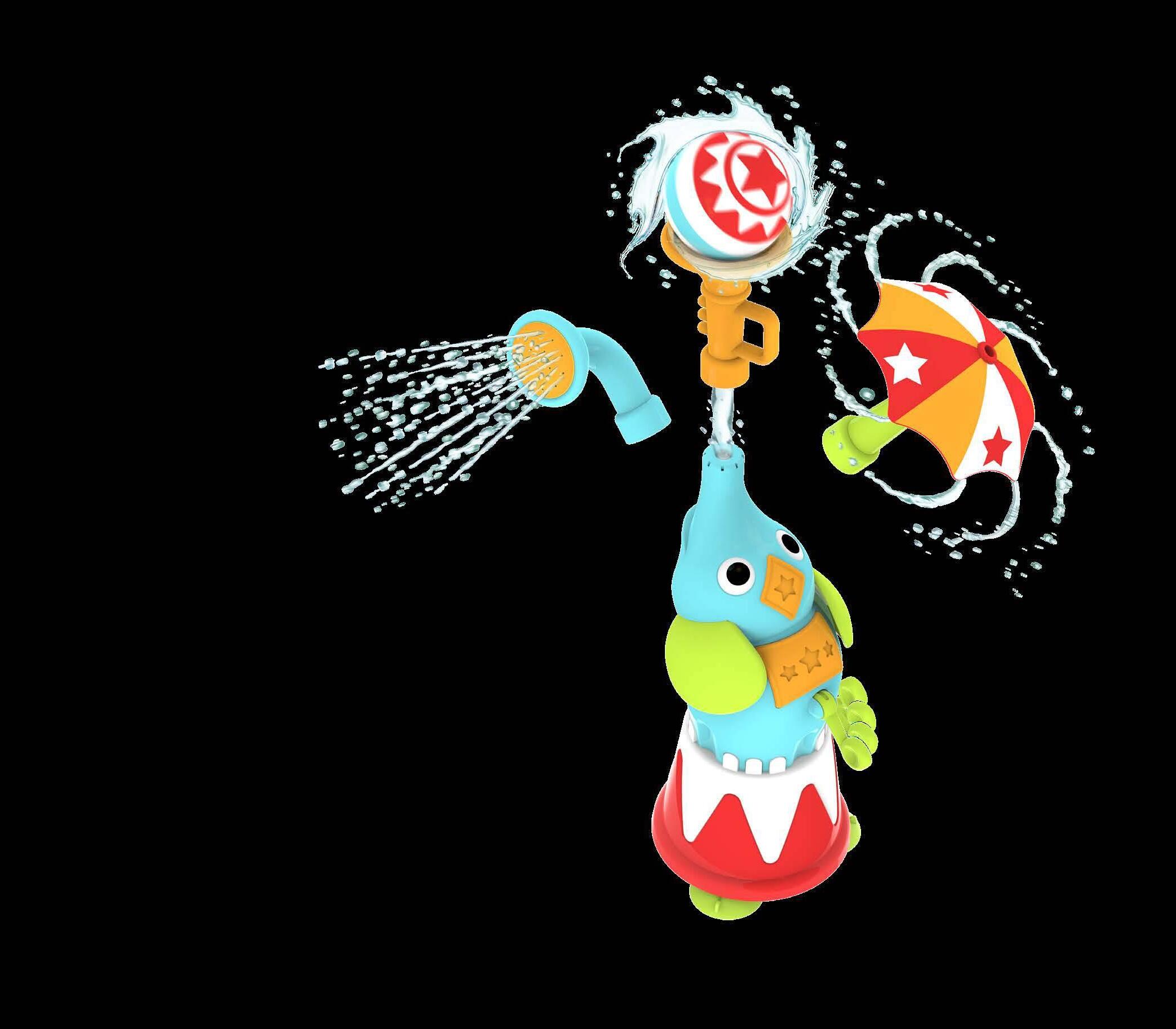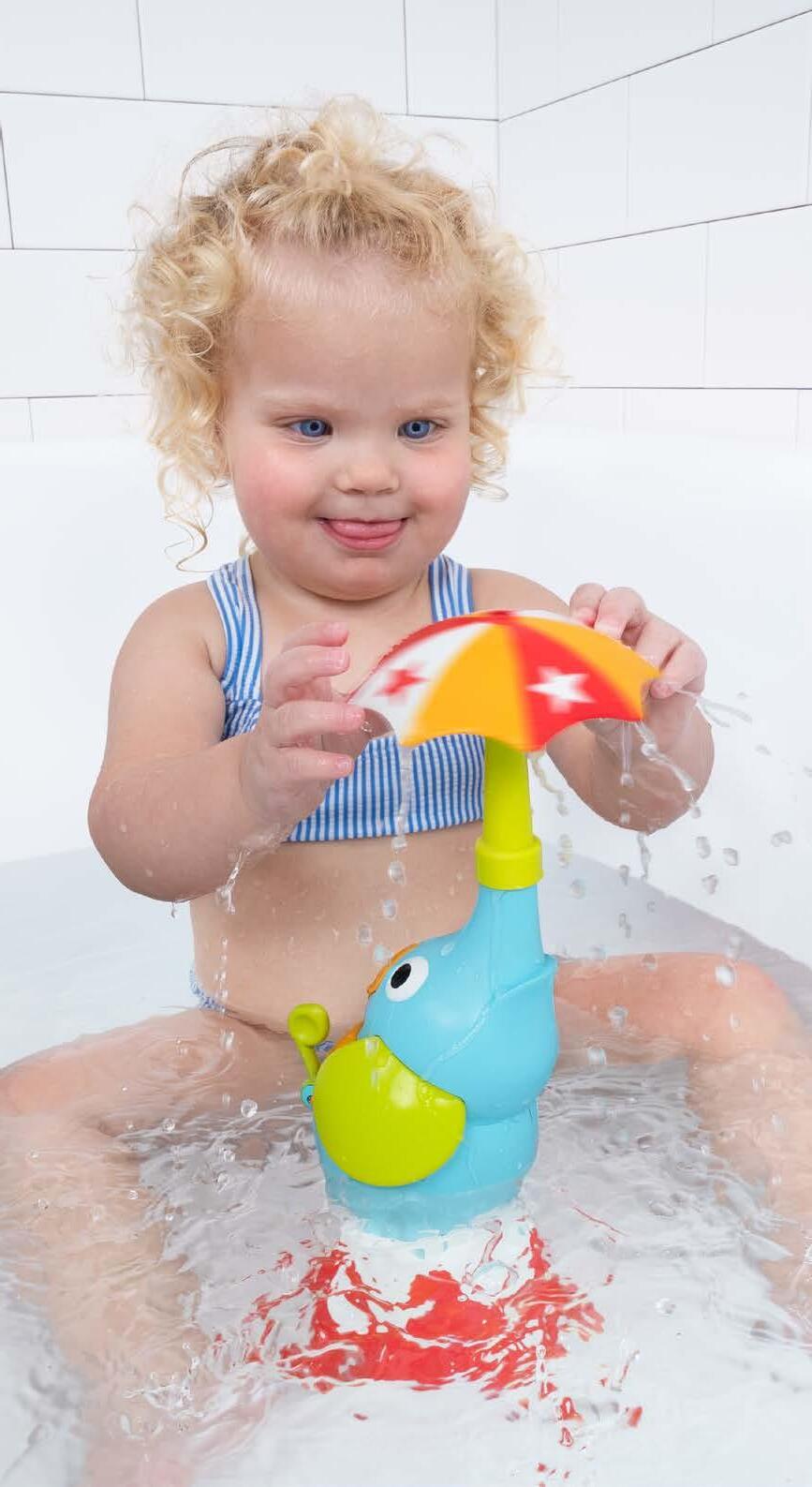 • A battery-operated elephant fountain toy with 4 accessories that produce an array of water effects.