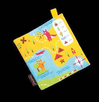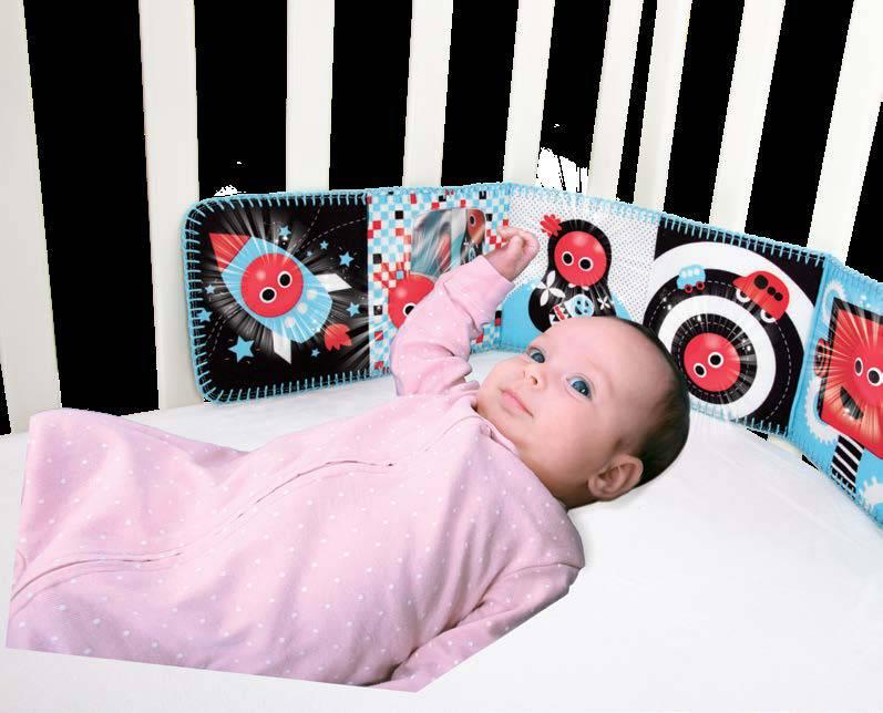 • Trendy illustrations with strong color contrasts stimulate baby’s visual development.