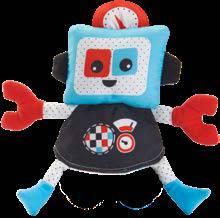 Friendly characters, animals and soft objects that easily attach to any Gym, Stroller, Car Seat or Bouncer.