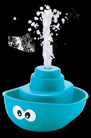 • A battery-operated bath toy that draws water from the tub and creates a unique fountain and race track.