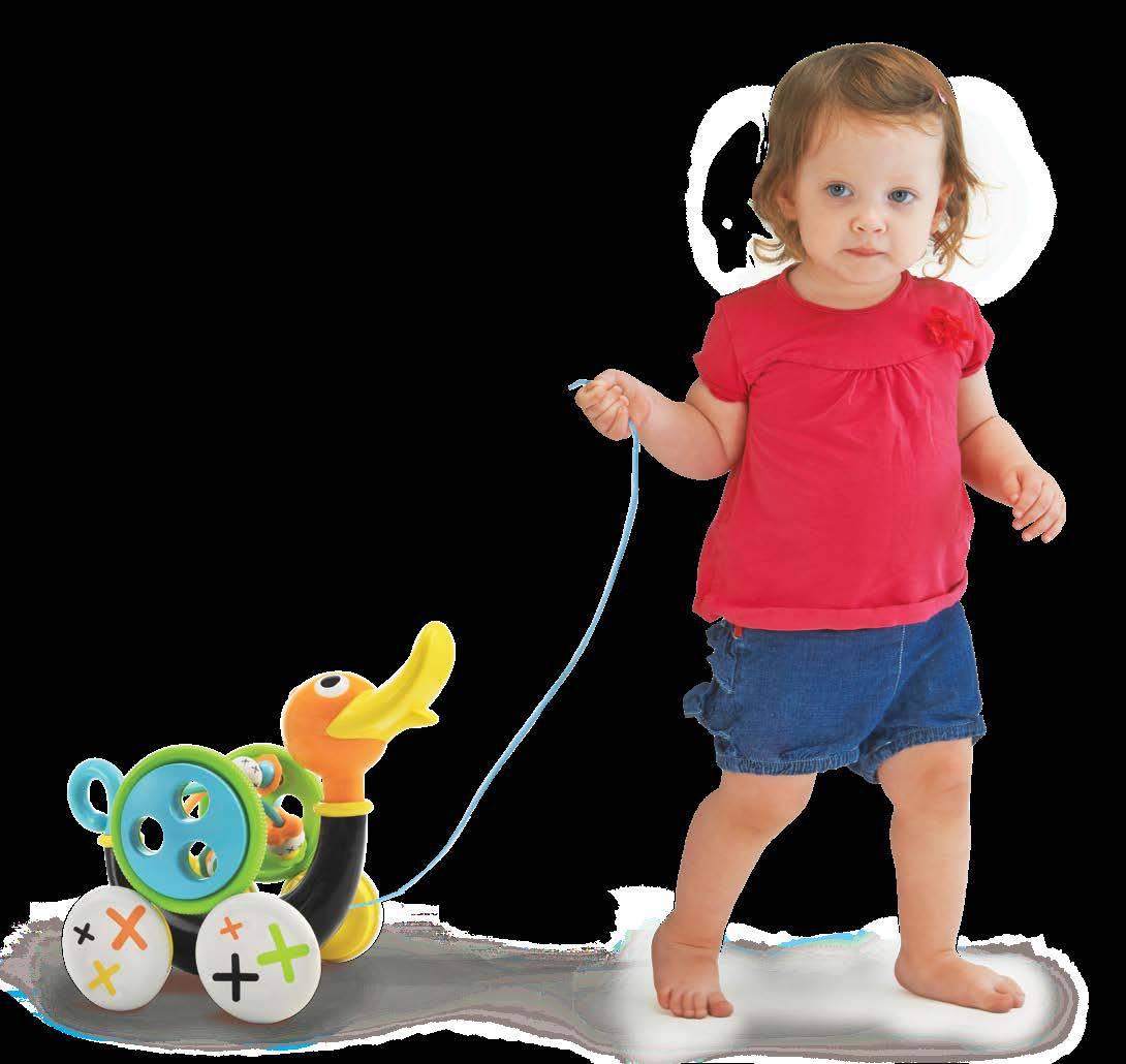 • Pull along duck will whistle and call your baby to play when left unattended.