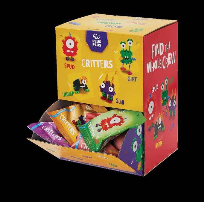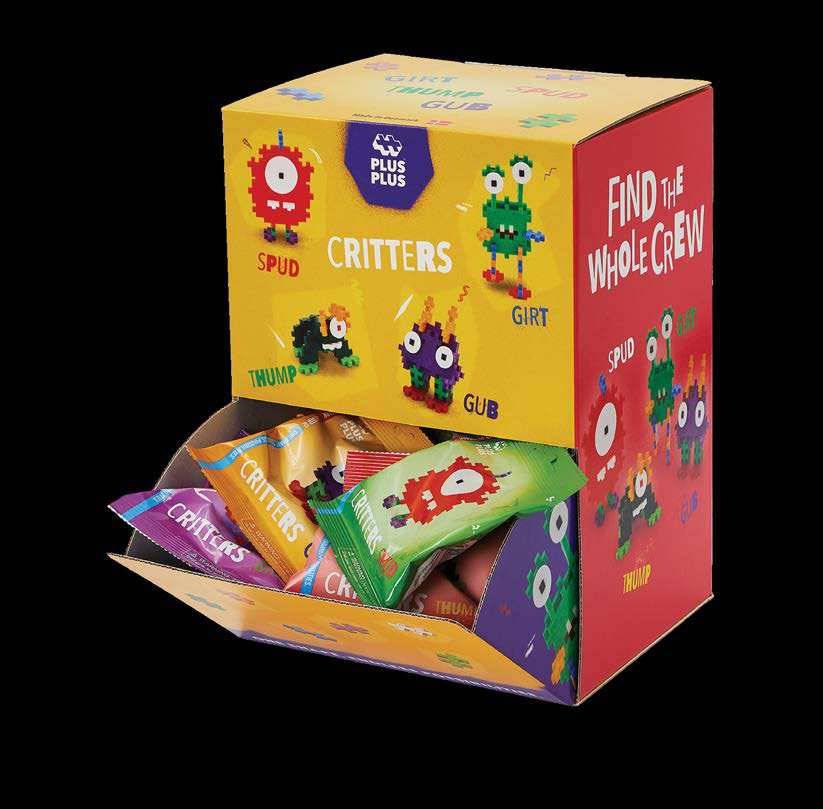 Collect 4 different Critters! In foil bags, sold exclusively in a 48-piece gravity-feed display, with 12 units each of 4 styles.