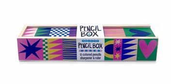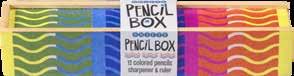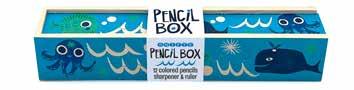 Wooden pencil box with 12 colored pencils, slide top ruler & wooden pencil sharpener +
