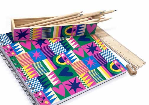 Journal & puffy embellished pencil pouch in one, with cute matching pencils. Everything you need in one place!