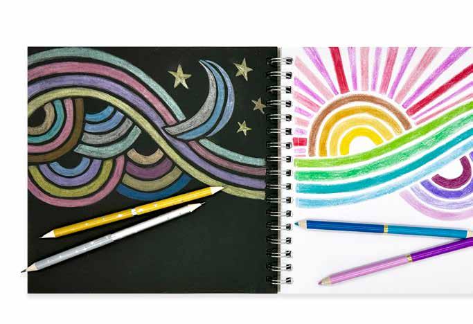 Use watercolor pencil ends to create drawings & FLIP TO DIP paintbrush end in water to transform drawings into paintings!
