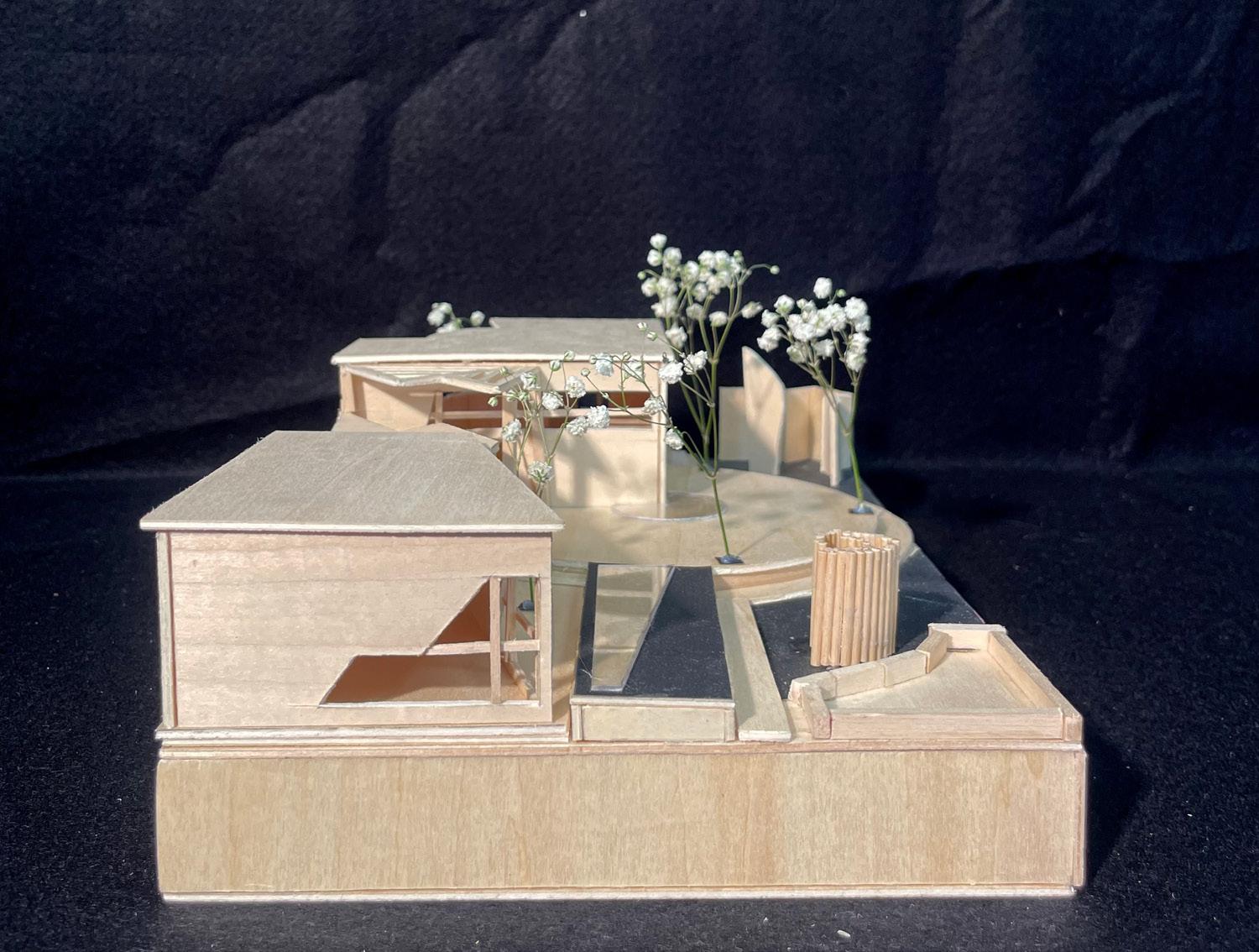 Site requirements include: courtyard, sculpture garden, sculpture wall, promenade, pavilion and plaza. The required site elements integrate the gallery and studio to the site.