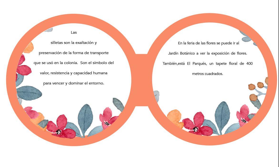 - Carrejer representa la feria de las flores en sus diseños y sus colores basado del Carmen de Viboral, hecho por artesanos locales.