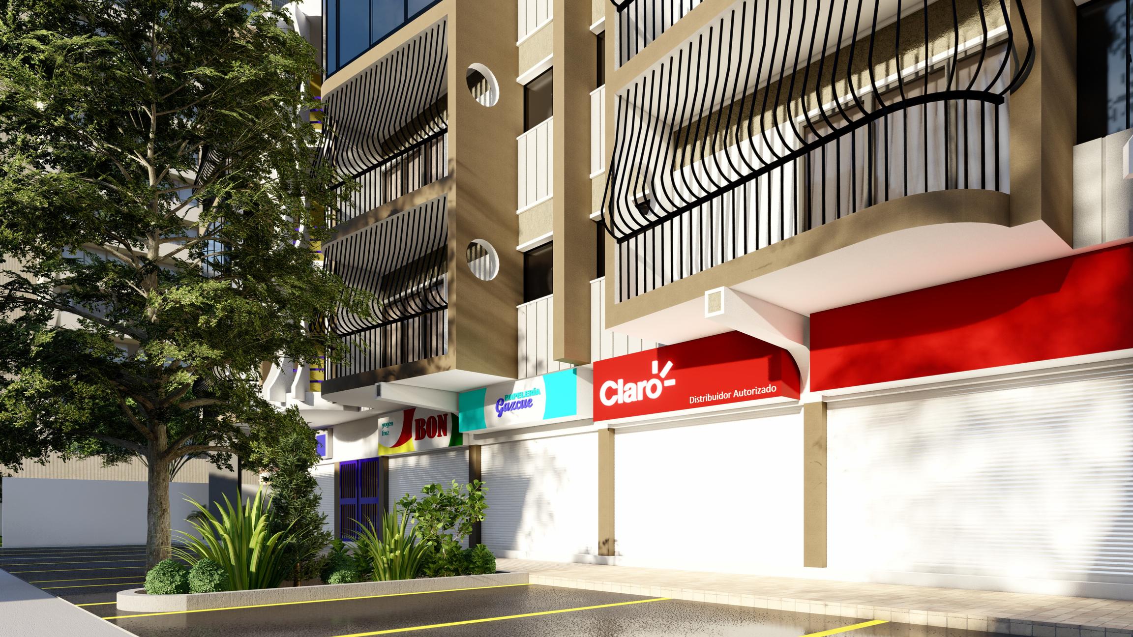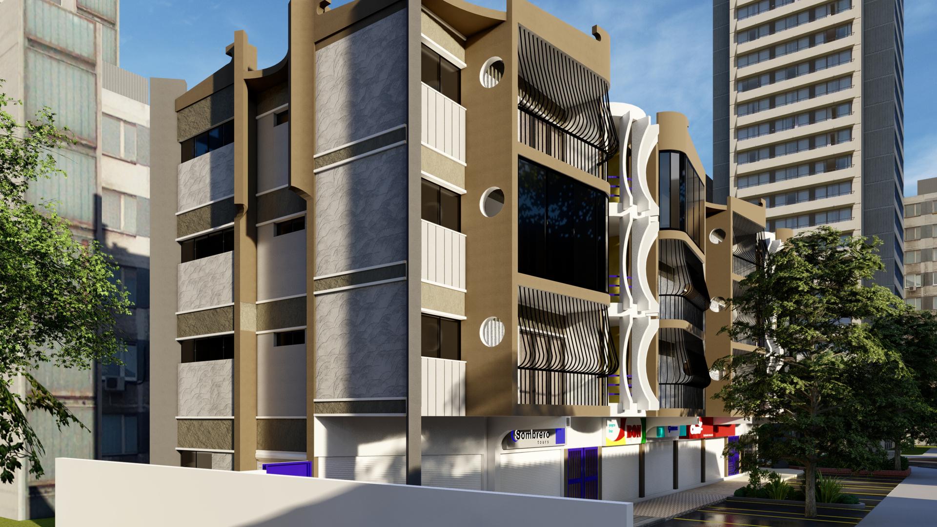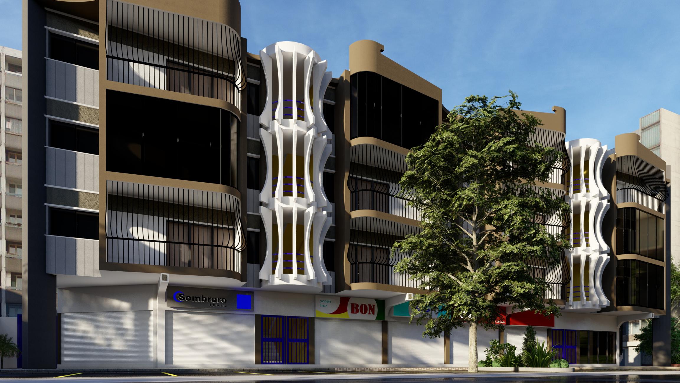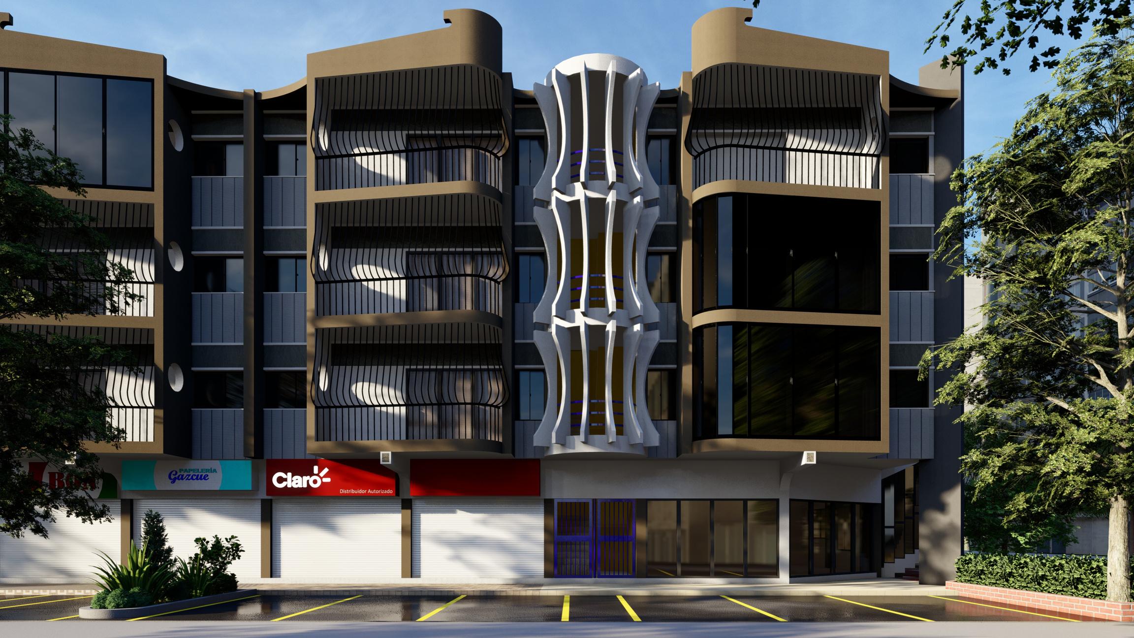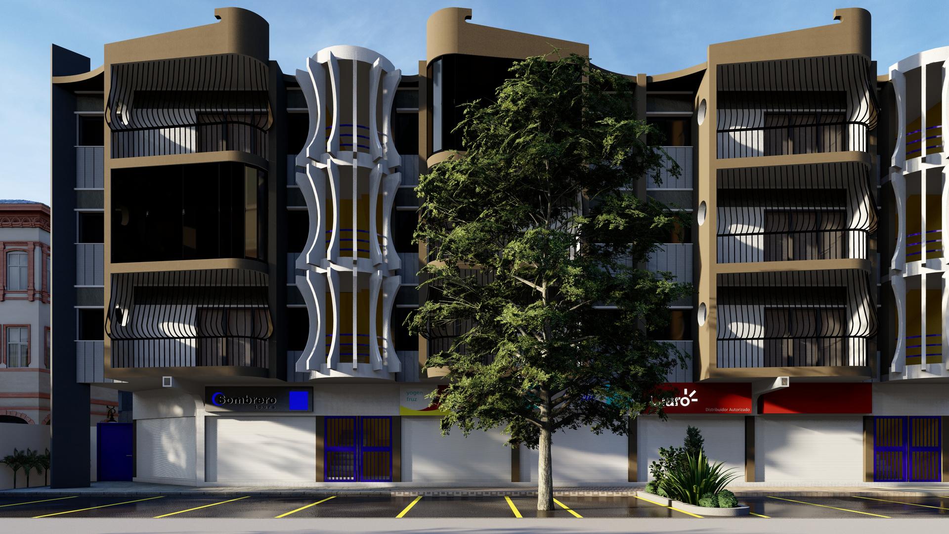 Diseño de fachada de edificio multifamiliar de 4 niveles, con una ocupación de uso habitacional y comercial, por lo que la elección de colores se realizó tomando en cuenta estos aspectos para una correcta integración con los usuarios y el entorno