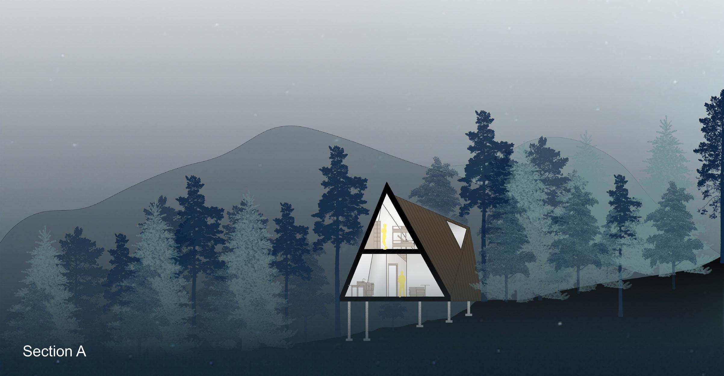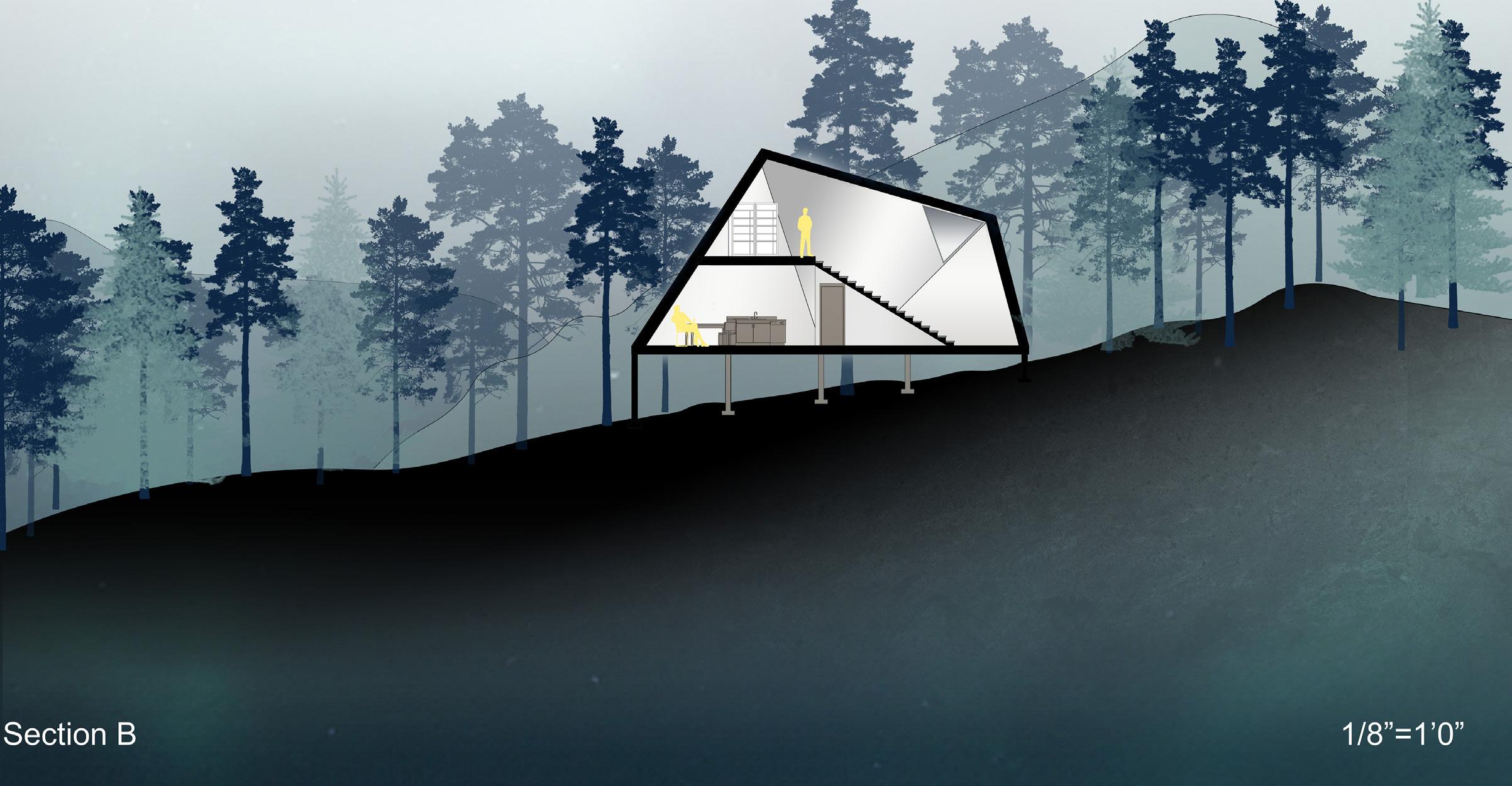 This project explores the Kuskokwim River’s significance in supporting migration and travel, particularly during harsh winter conditions. The design emphasizes functionality and safety, creating a cabin that serves as a vital resource for winter travelers. The shelter is thoughtfully designed to offer warmth, comfort, and protection, reflecting the practical needs of its users and the unique challenges of the Alaskan environment.