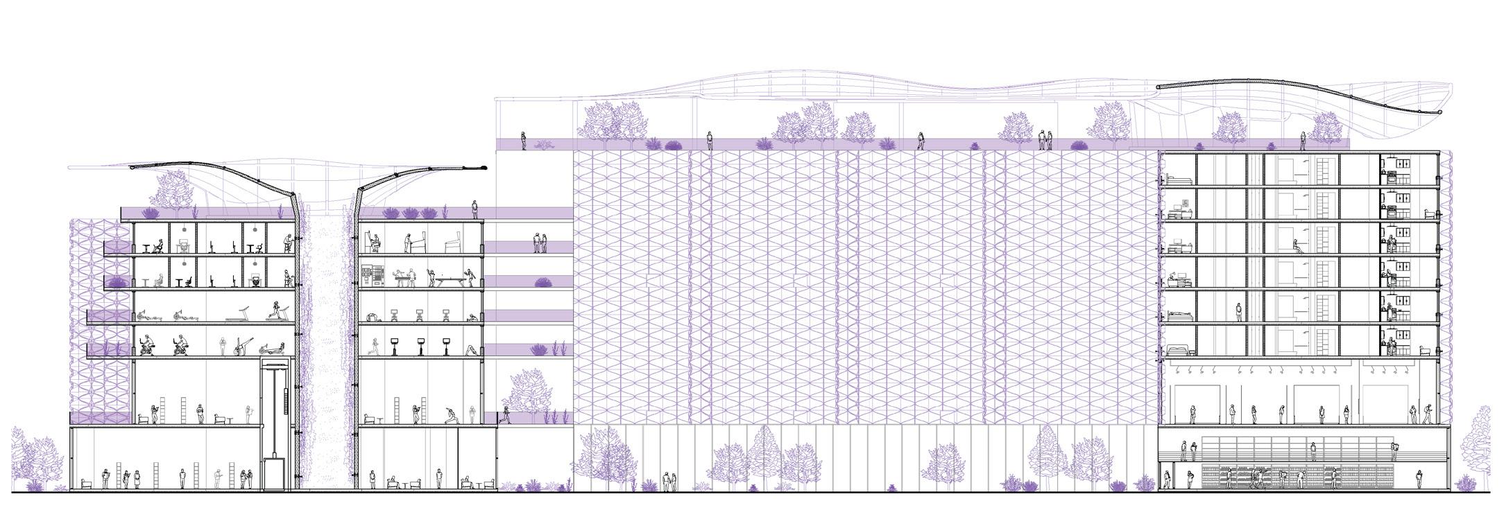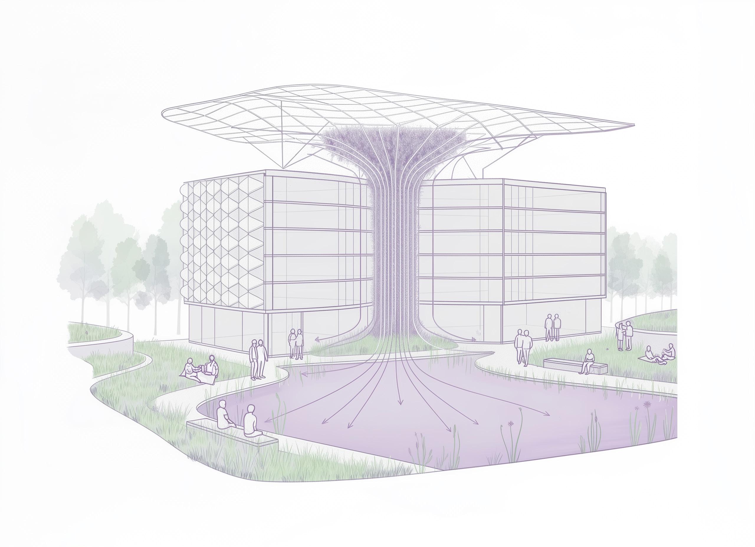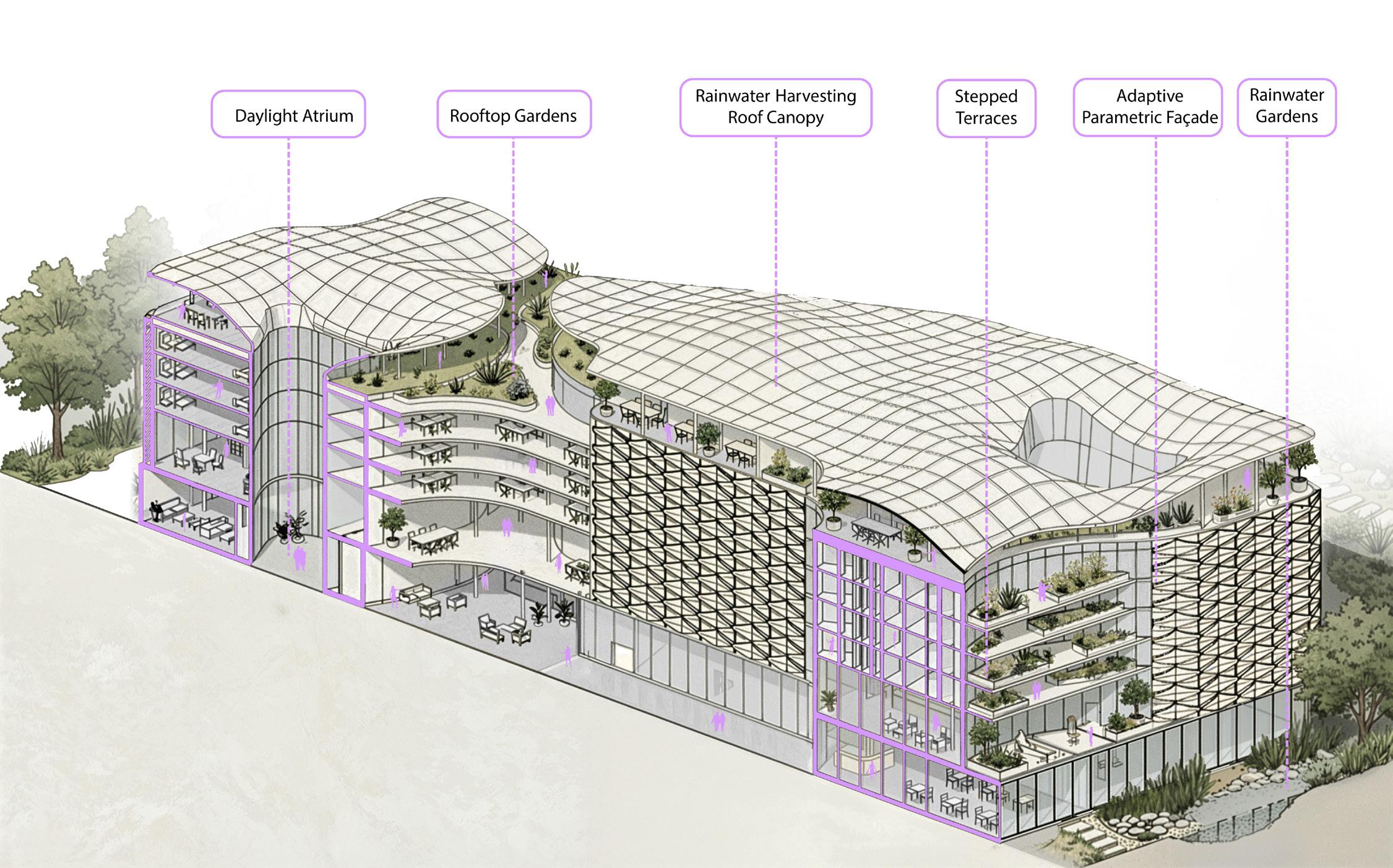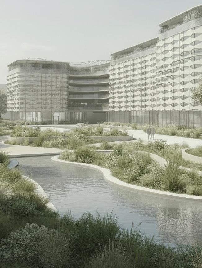 This project proposes a mixed-use building in Fort Worth developed through a researchdriven and AI-assisted design process. Artificial intelligence tools were used to explore ecological design strategies, massing variations, and environmental performance scenarios. The project aims to achieve netzero energy performance through integrated passive design, renewable energy systems, and climate-responsive form-making. The work reflects an investigation into how emerging digital tools can support sustainable architectural thinking.