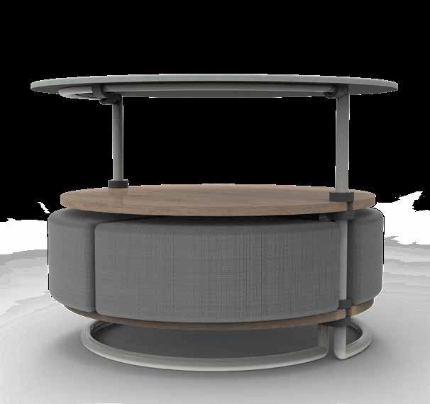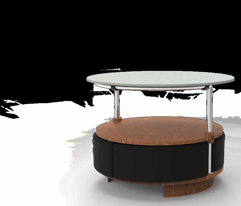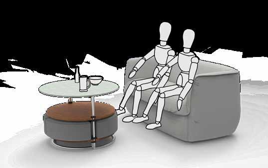 Cojín de espuma rígida, tapizado, con tela antifluidos (x4). Con altura de 180 mm para comodidad y fácil acceso a la mesa inferior.