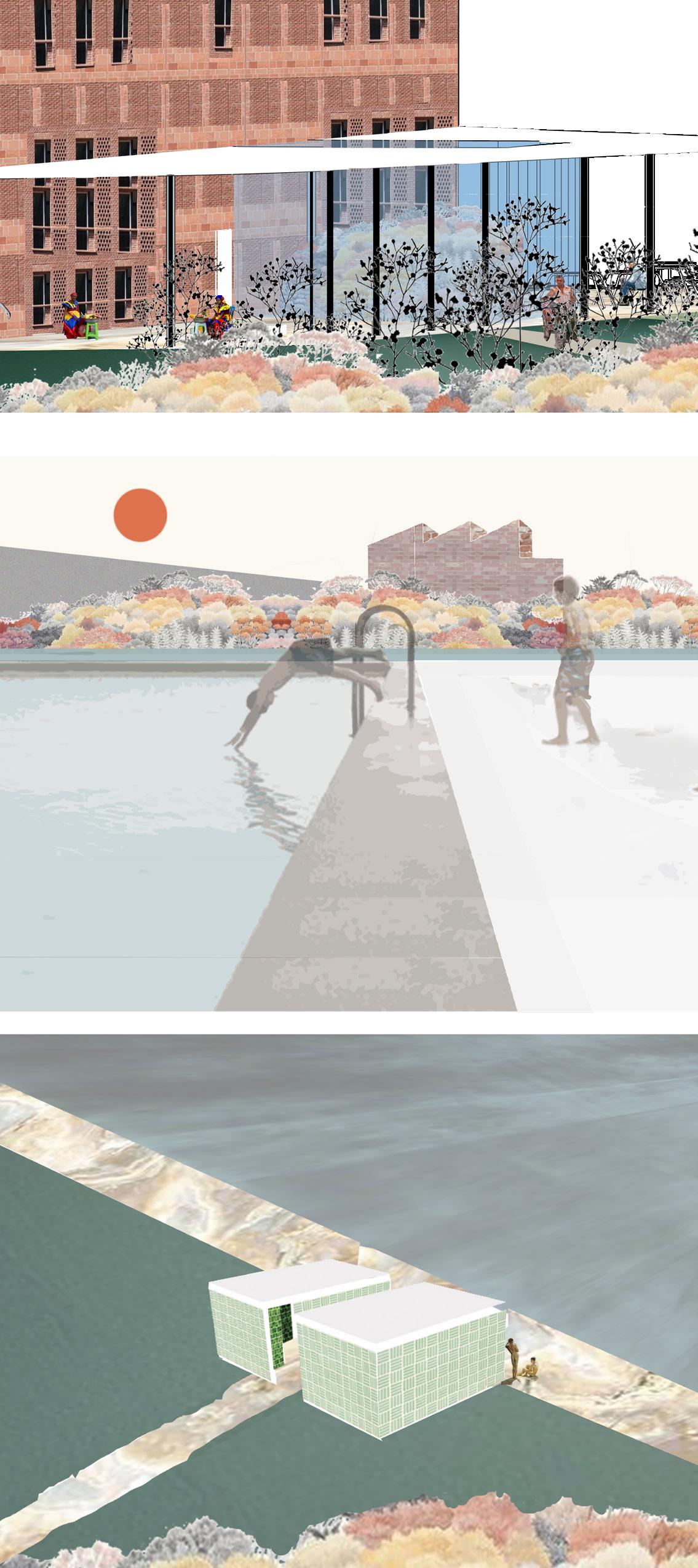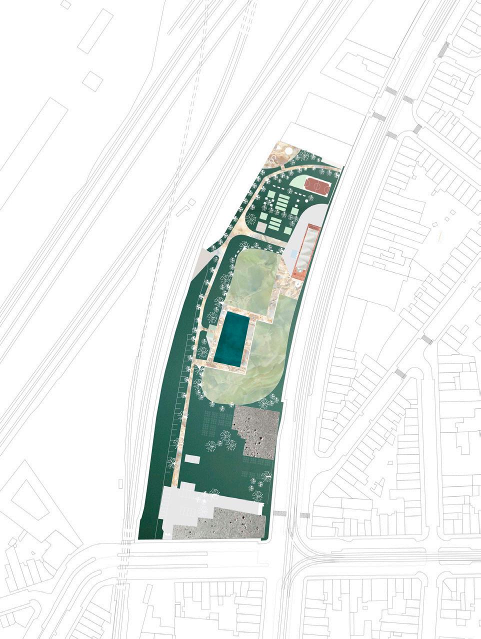 L’étude d’un ensemble de bâtiment industriel nous amène à proposer de réaliser un community center. L’intention était de réaliser un minimum d’intervention pour créer des espaces qualitatifs disponibles pour tous les utilisateurs du lieu. J’ai donc commencé par relier la partie industrielle avec la promenade verte de Bruxelles, les acteurs de la promenade seront amenés à traverser l’espace industriel.