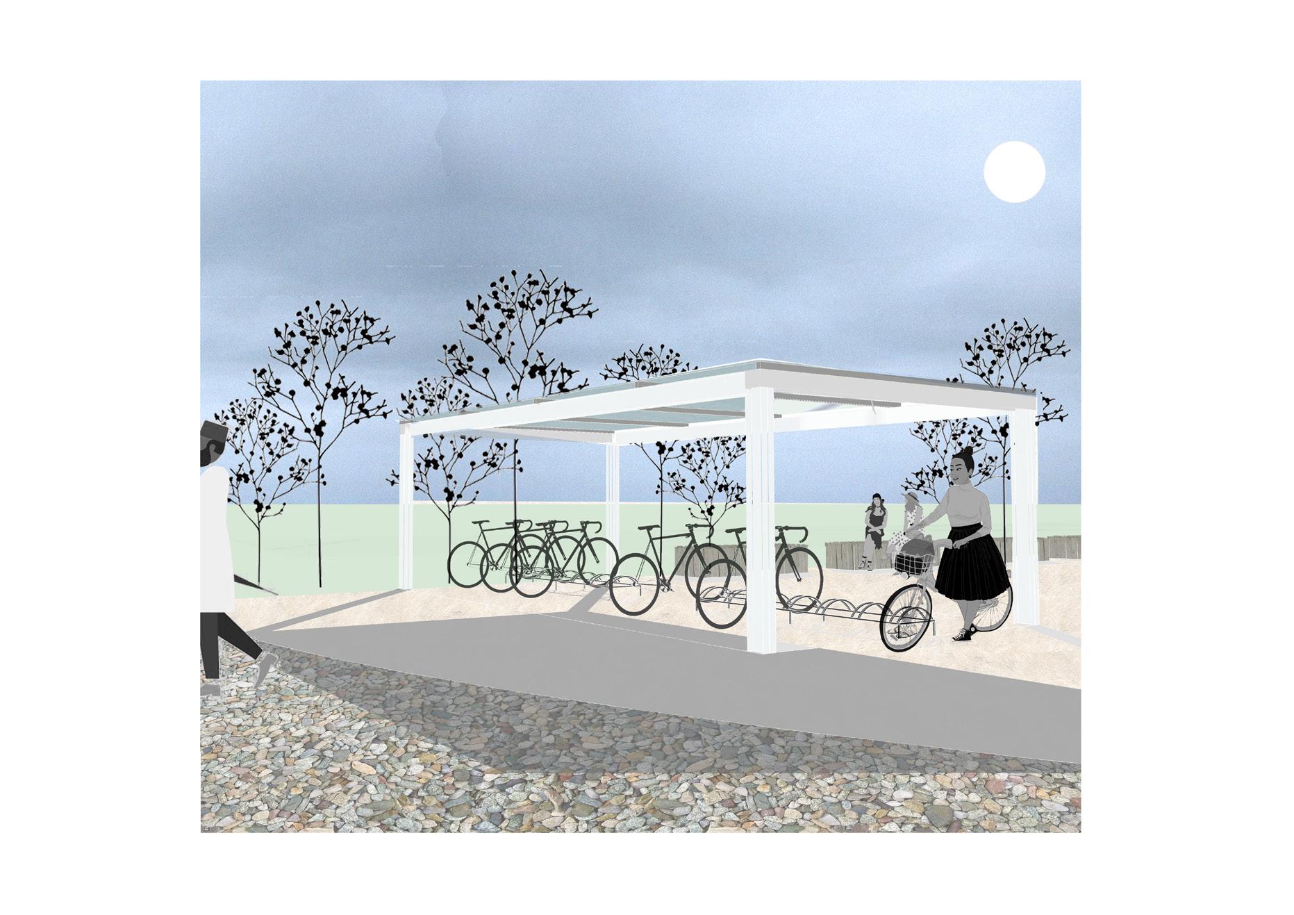 Des équipements publics seront à leurs disposi tions, tels que : des toilettes publiques, un terrain multisports, un auvent pour vélo et un pavillon de sport doux disposant également d’équipement sportif fixe et un mur d’escalade. L’espace de livraison des entreprises présentes va être redéfini grâce à un traitement de sol, des plots viendront définir l’espace automobile à l’espace piéton, les rayonnages seront disposés de sorte à définir la limite entre l’industriel et la place publique.