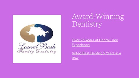 Laurel Bush Family Dentistry delivers gentle, anxiety-free dental care in a warm and welcoming environment. With over 25 years of experience, our award-winning team provides comprehensive family dentistry, evening appointments, and same-day emergency care. Proudly voted Best Dentist five years in a row, we’re committed to exceptional smiles in Bel Air, MD. Services: Preventive Dentistry, Restorative Dentistry, Cosmetic Dentistry, Oral Surgery, Sedation Dentistry, Periodontal Therapy, Orthodontics, Emergency Dentistry, TMJ, Esthetic Treatment Laurel Bush Family Dentistry 2111 Laurel Bush Rd E Bel Air MD 21015 443-512-8703 https://www.laurelbushfamilydentistry.com/
