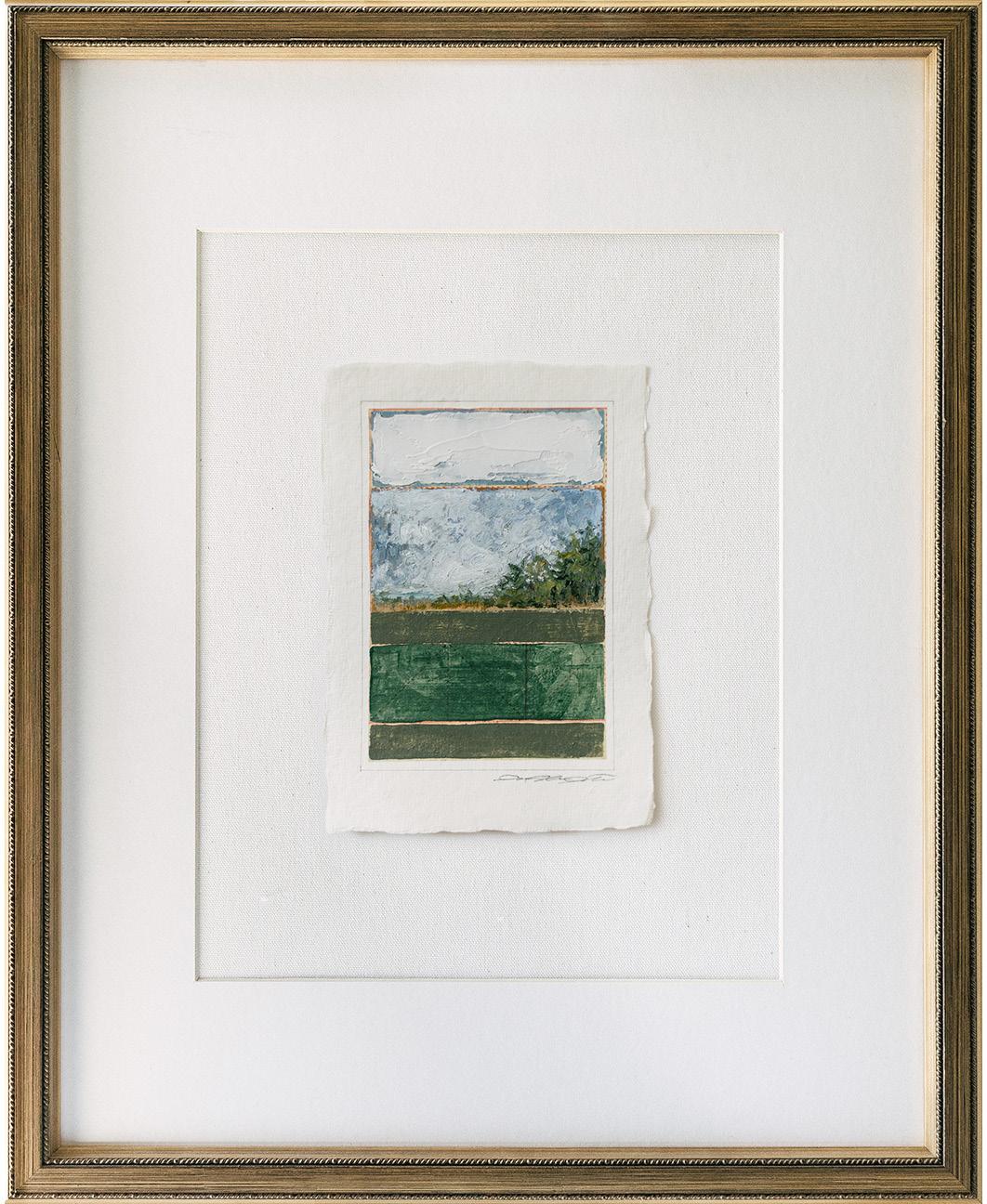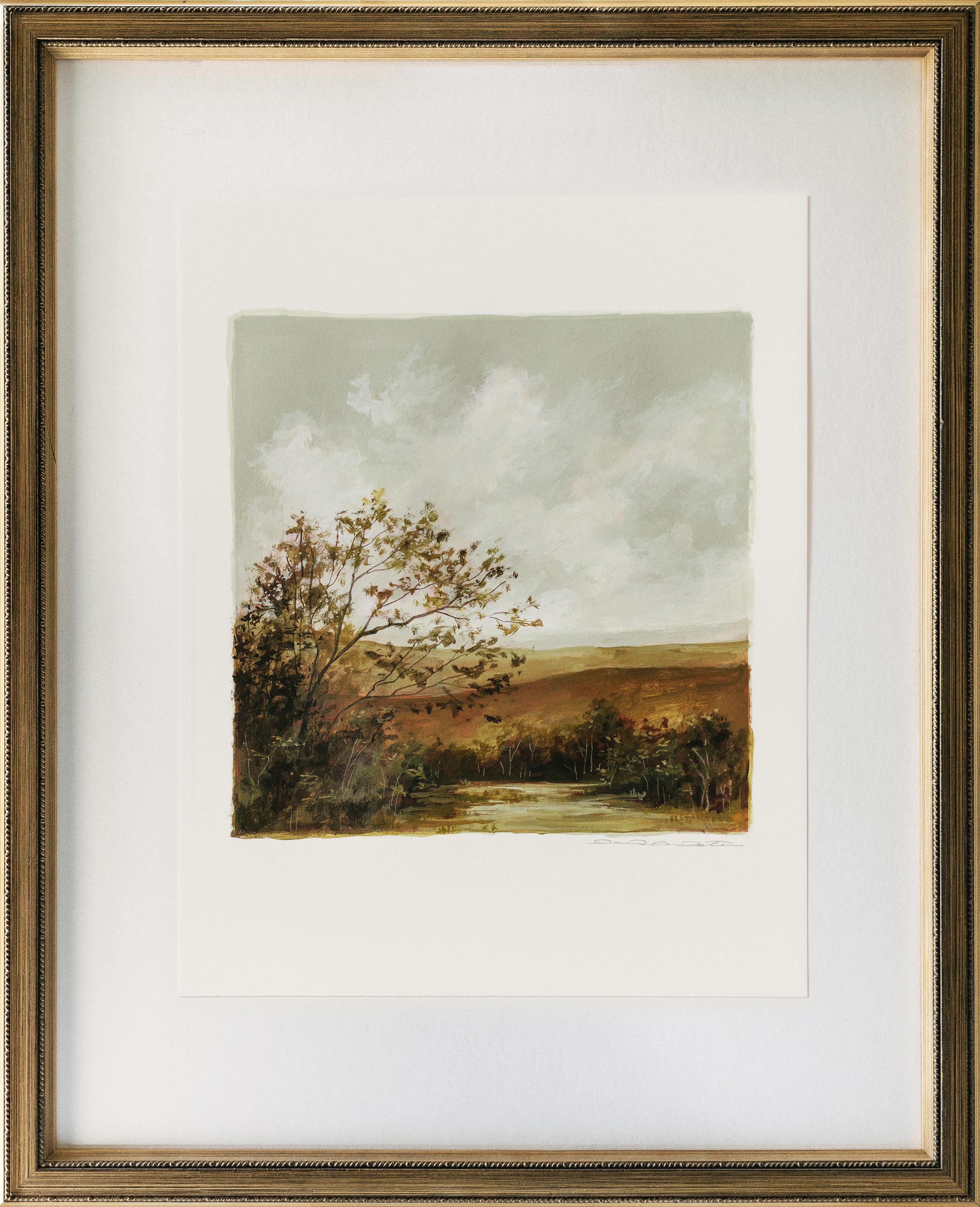 Limited run reproductions of the original painting, "Milk & Honey No.1" are printed on 100% cotton, acid free paper with a matte finish. Each piece is custom framed with a subtle float mount in a vintage, adirondack frame.