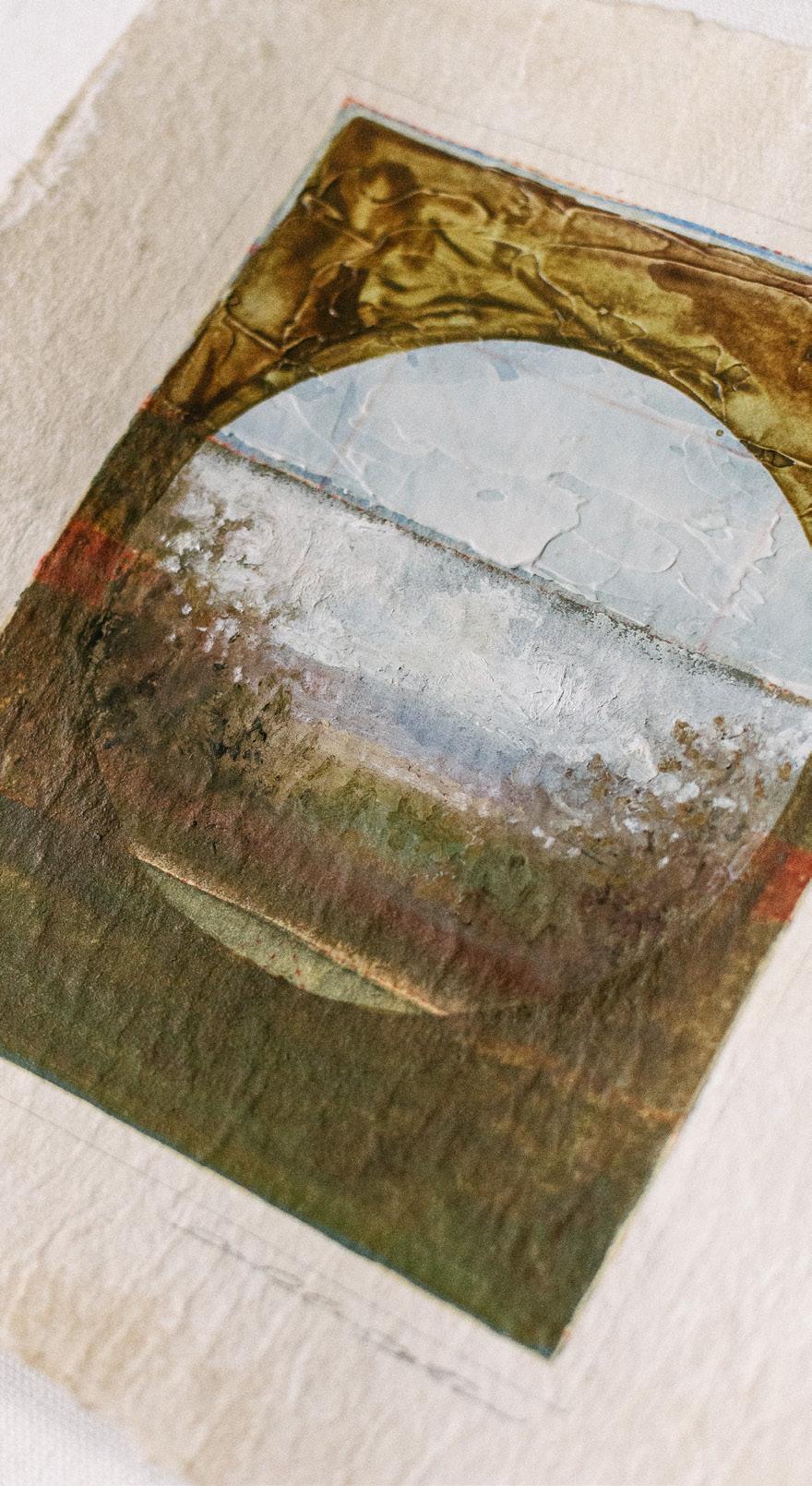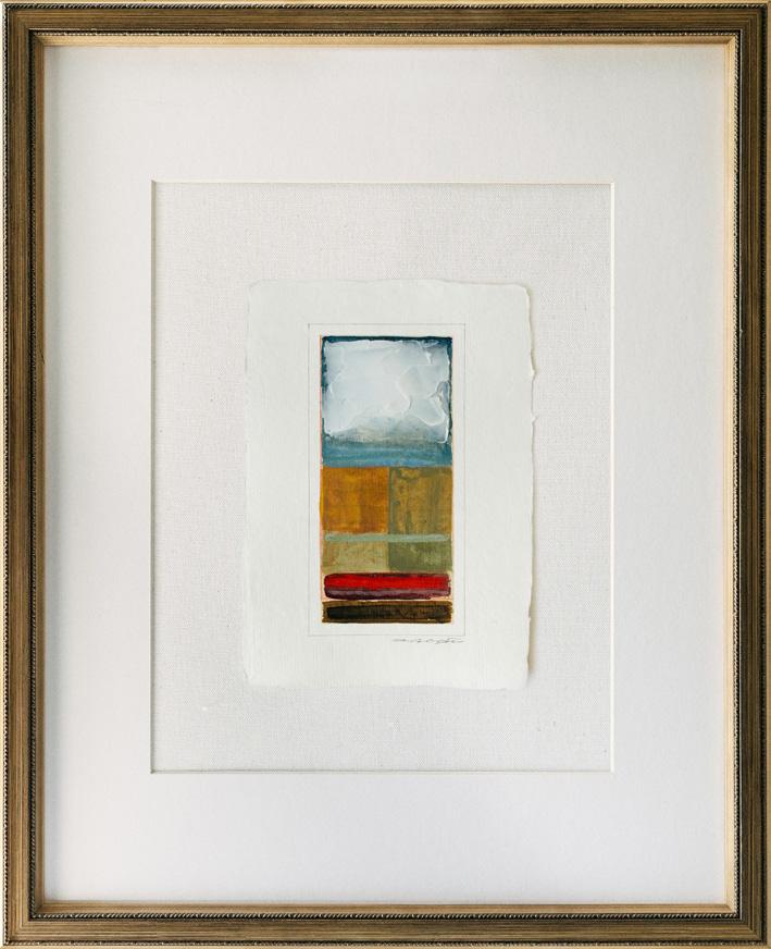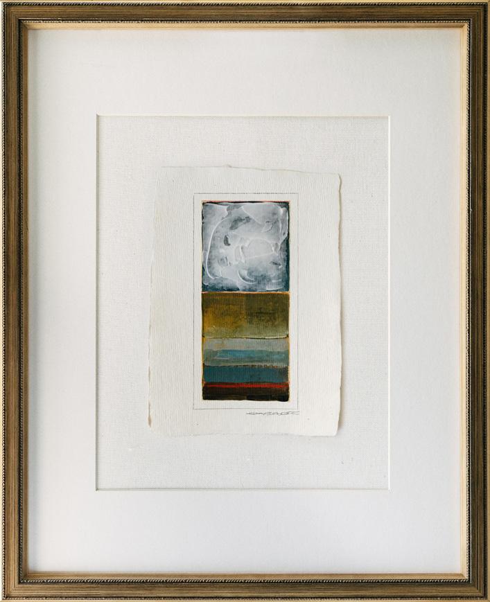 Using my signature color palette, these Land.Sky.Heaven pieces are a modern, simplified approach to the typical landscape. Heavily inspired by the great modern artist, Mark Rothko, I experiment with texture and the abstract concept of a layered, milky heaven — full of depth and light. Each work is painted on handmade, hand dyed 100% cotton paper with a natural deckled edge.