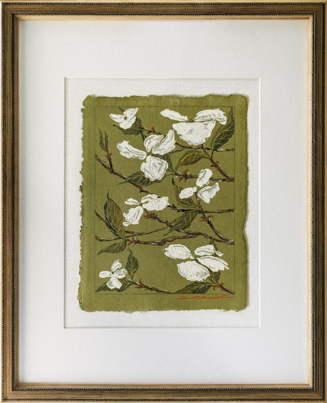 framed dogwood on olive no.2 // 20"x20"x1" // FRAMED