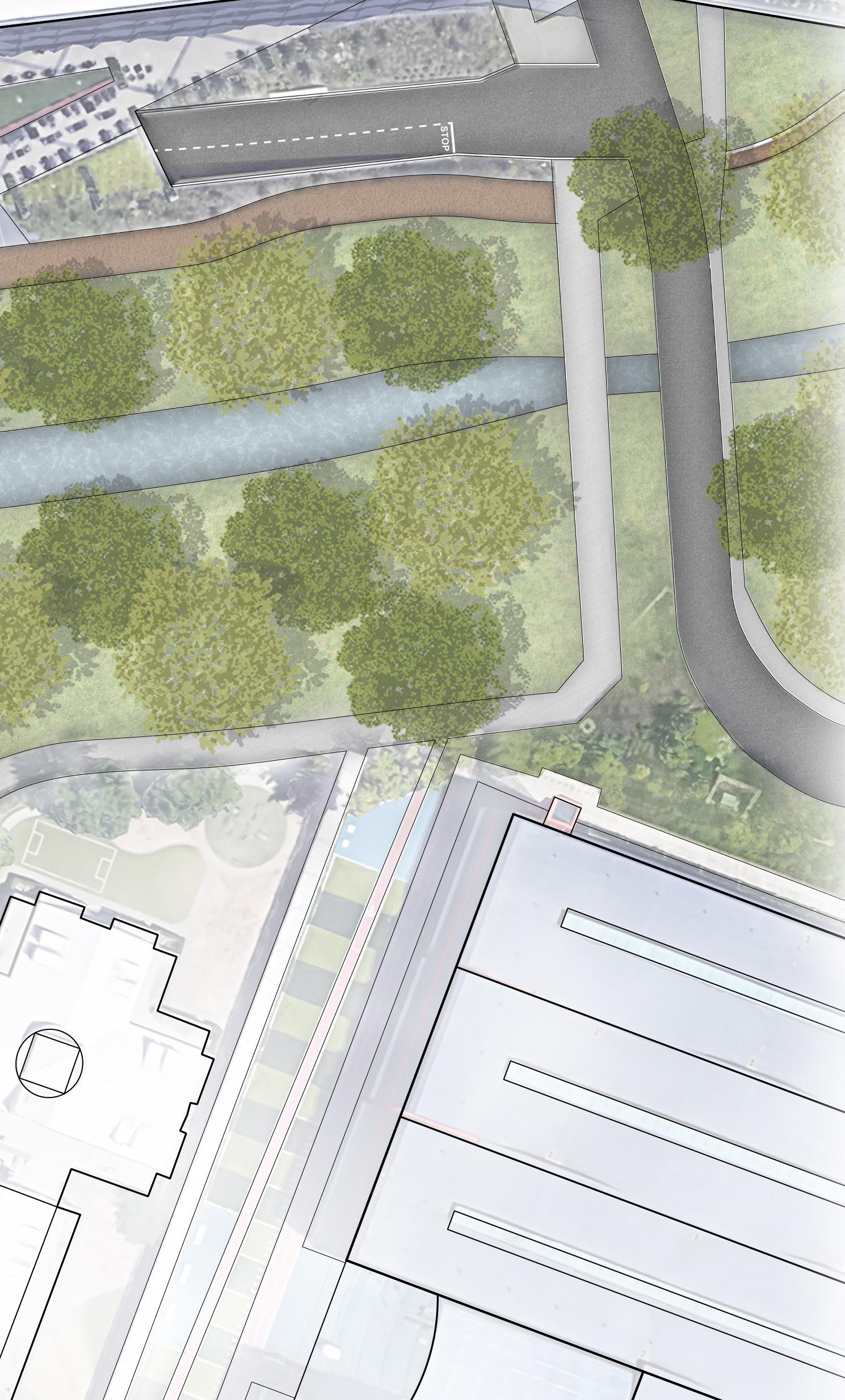 As a result, the focusof this project is on creating a landmass building that works with the existing environment as much as possible , in order to blend the connection between indoor and outdoor spaces. Through this discovery, a central circulation path was created to be a representation of the sport, emulating this simulation of running around a track, in an attempt to rotate around the existing topography so one is able to experience a view from any location within the building.