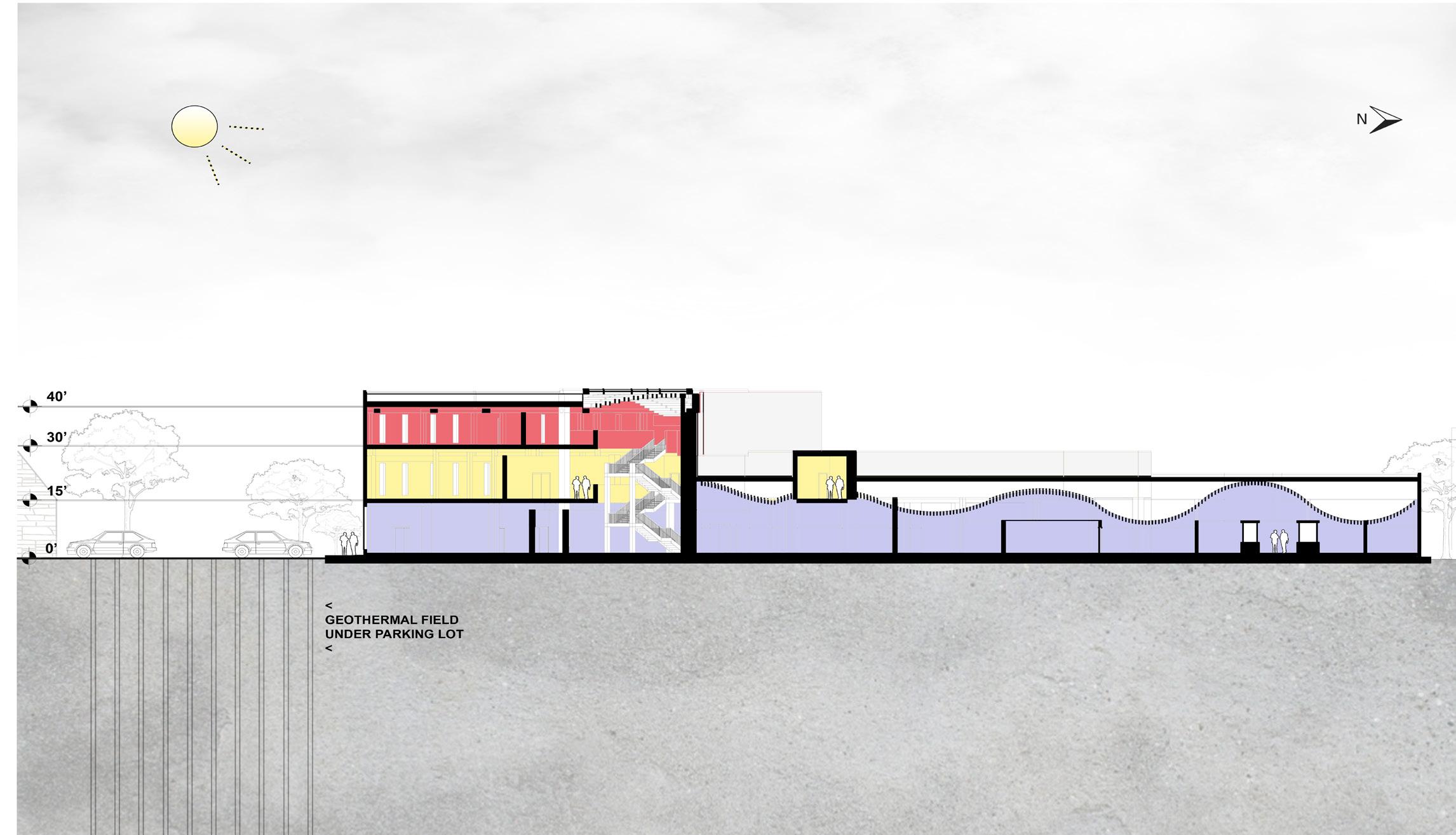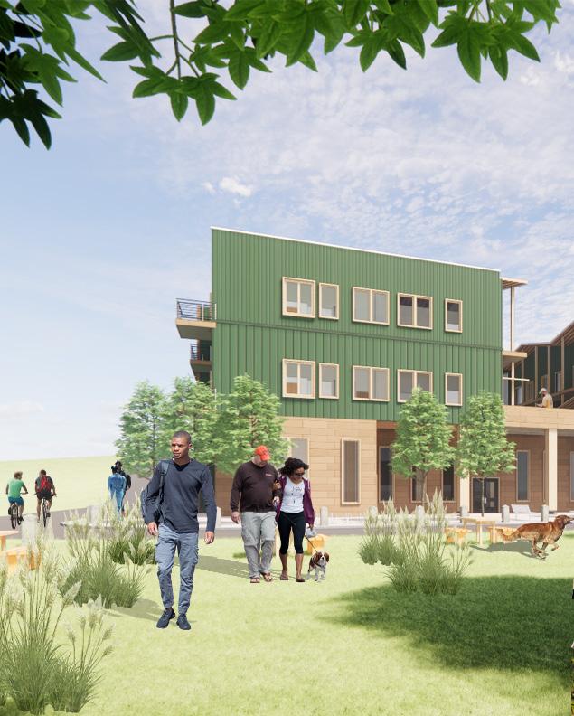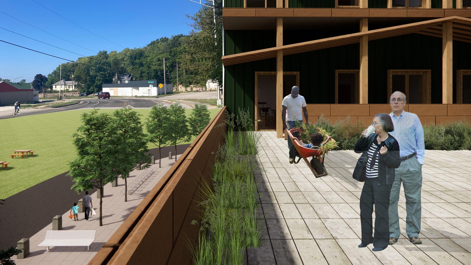 Program components address the need for more multi-generational public space in Lawrence. Street-facing pockets of outdoor space invite public gathering and a variety of programmed activity.
