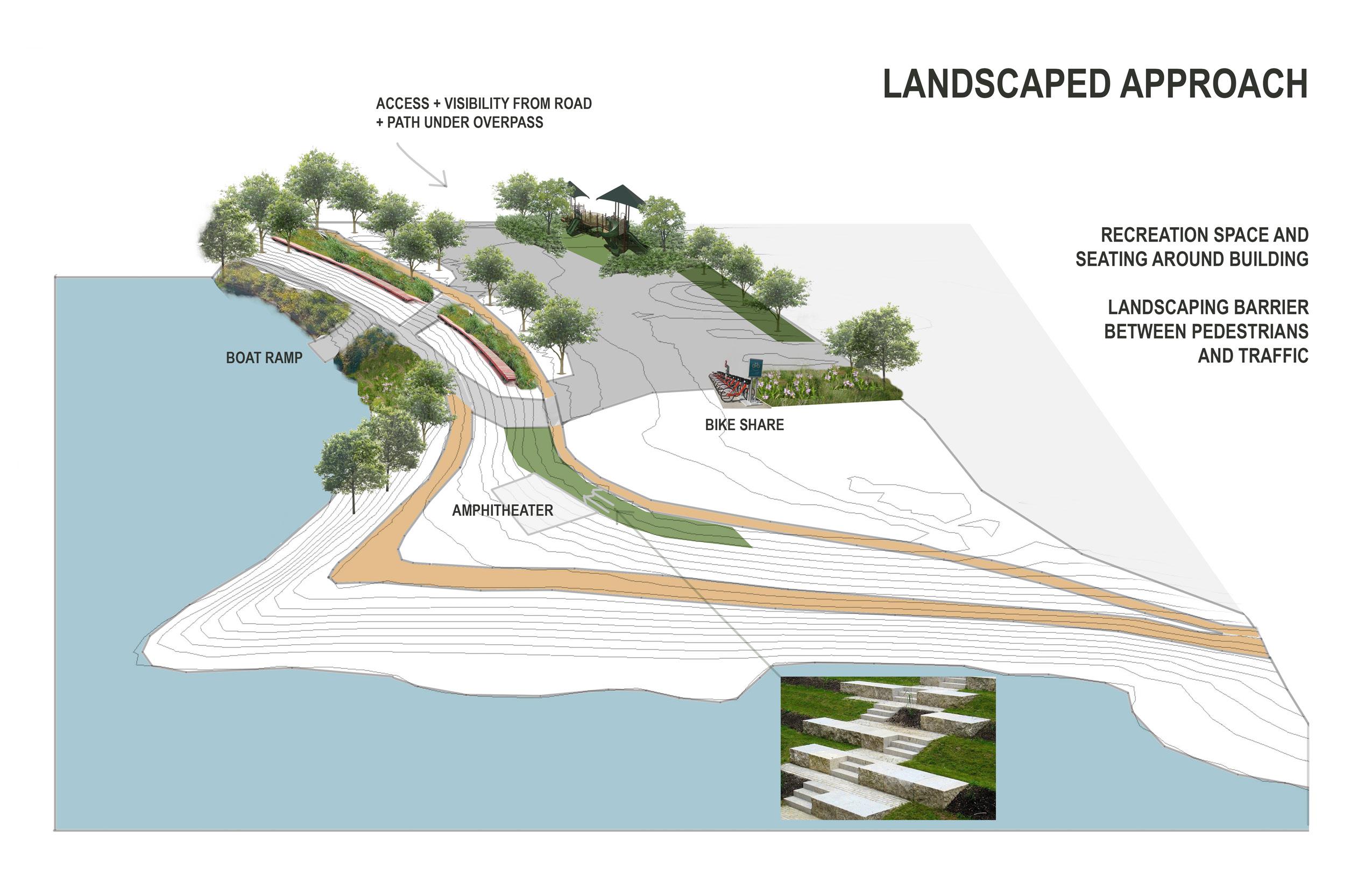 The site for this project is a park on a point of land at the confluence of the Kansas and Missouri Rivers.