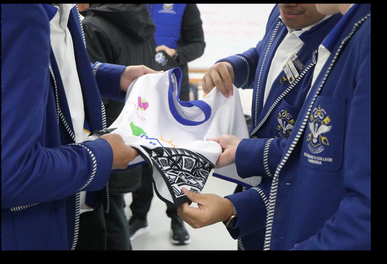 This year's First XV playing jersey has artwork that is designed by our own art teacher, Mr Peter Fatupaito The design on the jersey was influenced by a common Polynesian tattoo that covers majority of a man’s body, starting from the ribs, down to the knee caps This significant tattoo is given to many men of importance who would receive it in a traditional manner. Each strip of pattern resembled the most common pattern/shape to each Polynesian country, hence each representing and being symbolic of the four Polynesian countries represented in the First XV team – Samoan, Tongan, Maori, and Fiji.