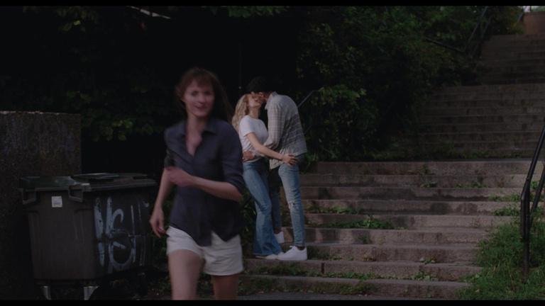 Onherwayback,Juliestopsnearacoupleina frozen,passionateembrace,andplayfullymoves thewoman’shanddowntotheman’sbuttbefore turningandwinkingstraightintothecamera. The intention behind this seemingly spontaneous scene is revealed through the influenceoftheFrenchNewWaveonTrier's directorialstyle.Thedirectorsays,“Ilikethatin theFrenchNewWavetheymaketheaudience awarethattheyarewatchingafilm,yettheyare allowedtofeelandthinkandidentifywithit… We’rewatchingamovie!AndI,asafilmmaker, am inviting you to play along with us” (McHenry).