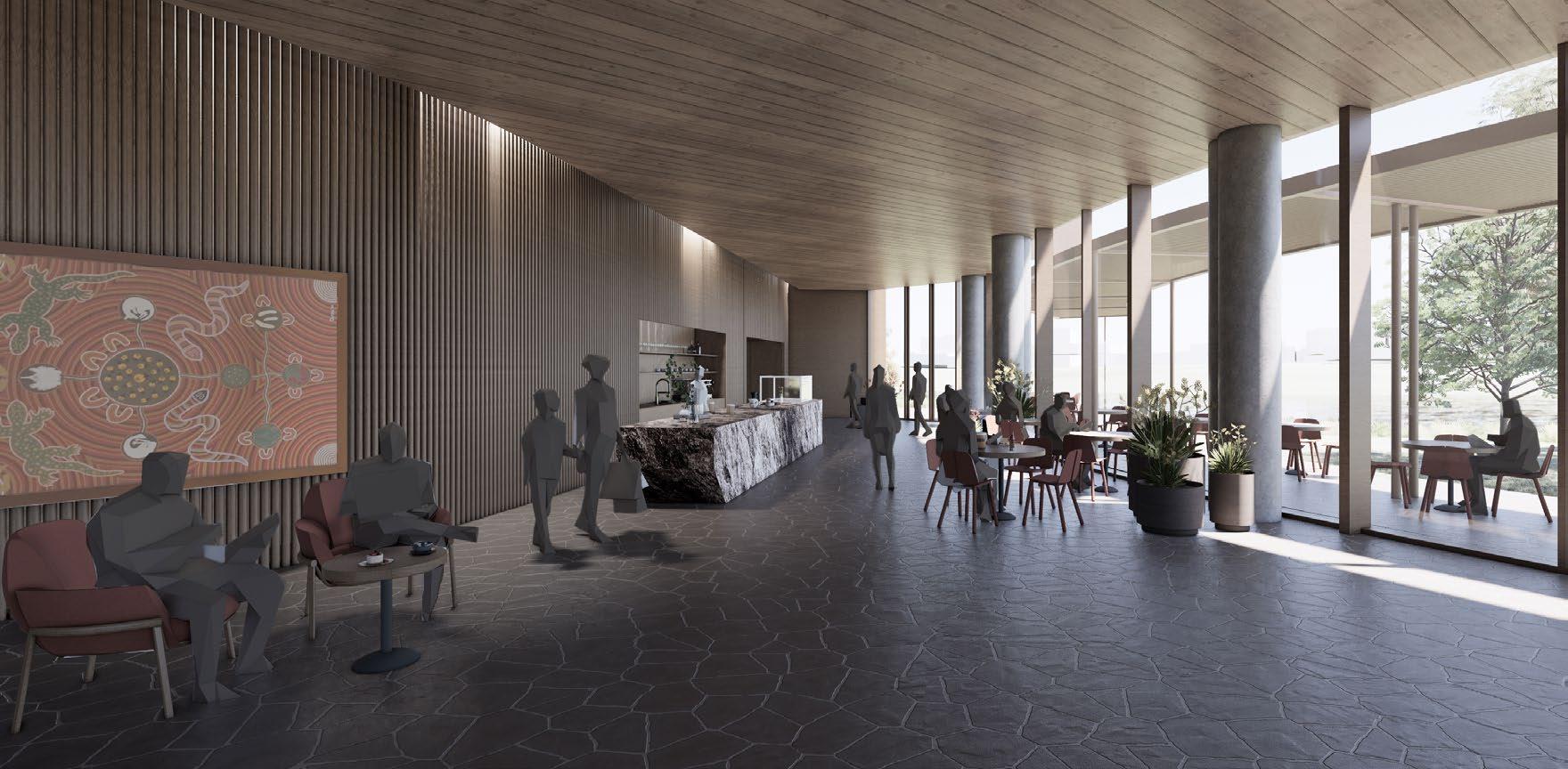 A building as a place for Community to gather, its form is inspired by Country, respectful of its surroundings, maintaining significant Cultural elements, responding to the increasing needs for health, social, cultural and corporate services and represents a place where Community feels welcome, safe and proud.