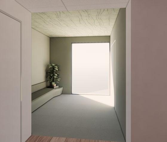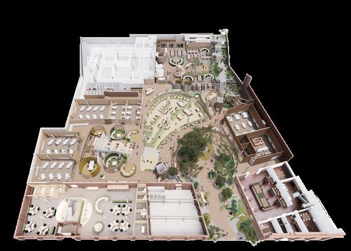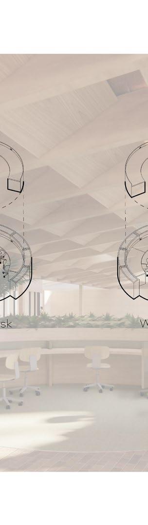 Through the central core and internal garden, the green corridor, made of the network of creeks, moats and waterways winding through campus, is allowed to ‘leak’ inside the building and create a strong connection to the natural environment.