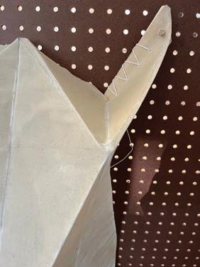 Following initial paper studies and small scale fabric explorations, I selected the following form to construct at a larger scale out of muslin impregnated with UV resin, resulting in Pinnacle