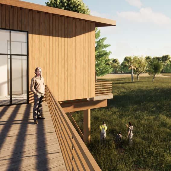 Cypress trees are native to the lowcountry southeast. Cypress trees harvested for construction will be repurposed for the exterior cladding of the buildings.