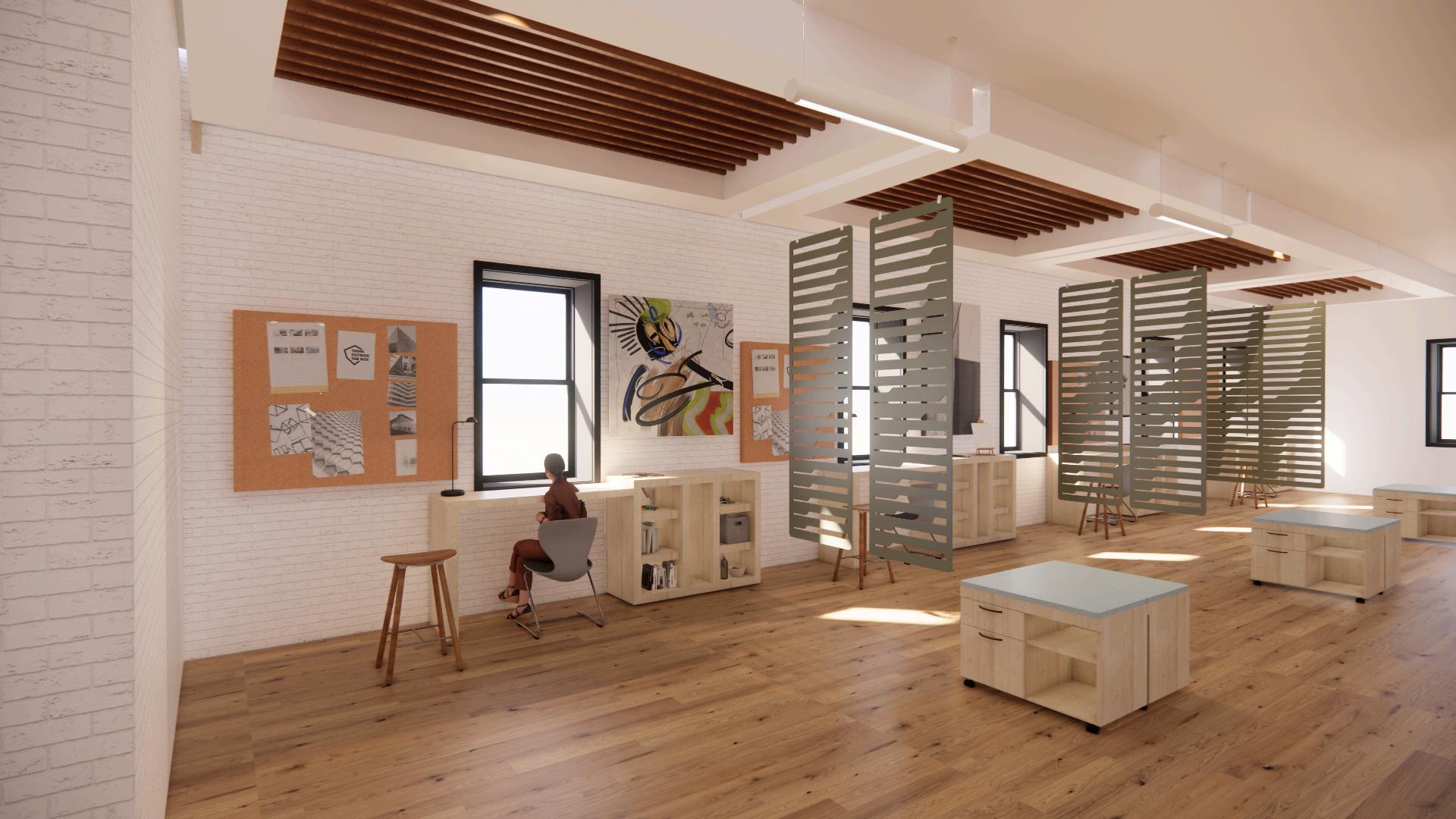 — from “The Hub,” the central gathering space, to “The Block,” which reflects the character of Chicago’s street grid. Industrial materials, layered textures, and natural elements work together to create a space that blends creativity, collaboration, and a sense of place, bringing the energy of Chicago into NEXT’s new home.