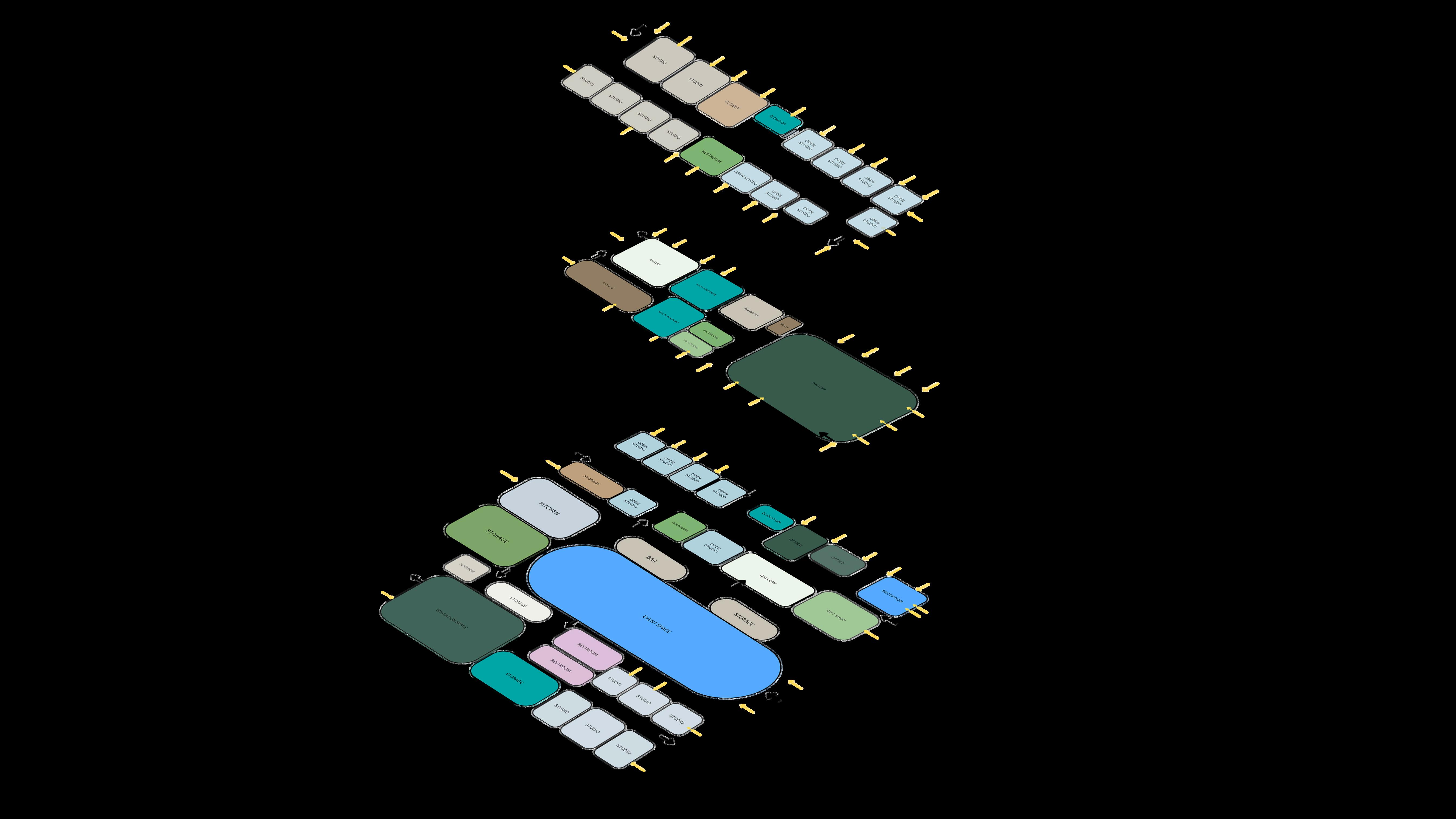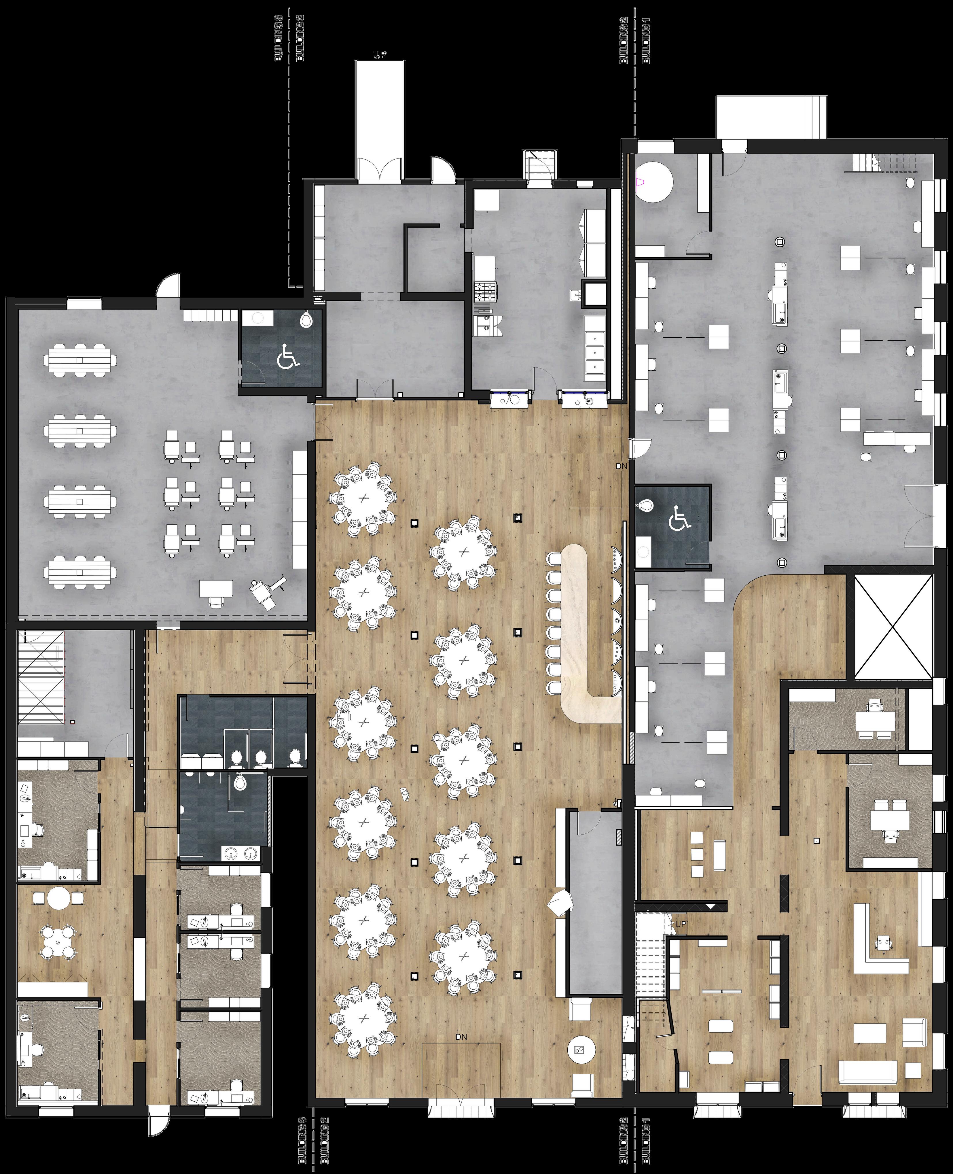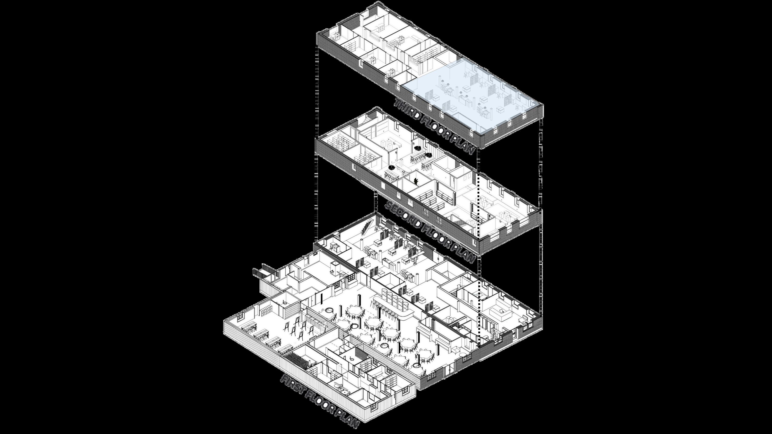 Each zone adapts to multiple uses while maintaining clear purpose and ease of flow throughout the building.